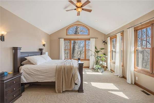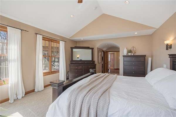 The main level includes a spacious primary suite with an arched hallway entry and beautiful windows that flood the space with natural light.