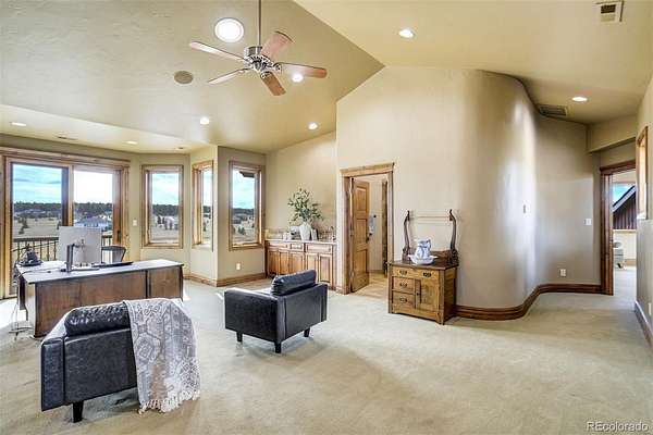 Five extended garage bays plus an oversized RV/boat bay offer room for vehicles, hobbies, and adventure gear—because in Colorado, the road often leads somewhere worth remembering. Here, overlooking the greens and framed by mountain views, life slows just enough to savor it. This home isn’t just a place to live. It’s a place to live well. Golf course view, Golf course lot, Pikes Peak and mountain views, Energy efficient, Hardwood floors, Elevator, Cul-de-sac, Rv / boat parking, interior Hot Tub in grotto setting, Extensive water feature with meditation pond