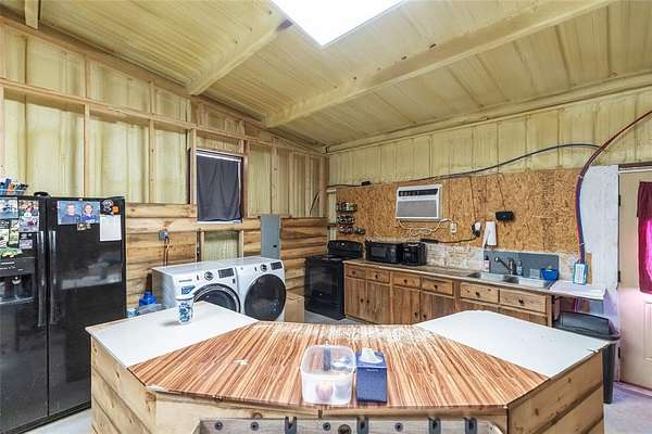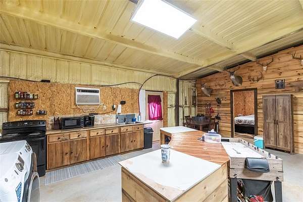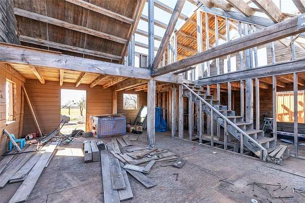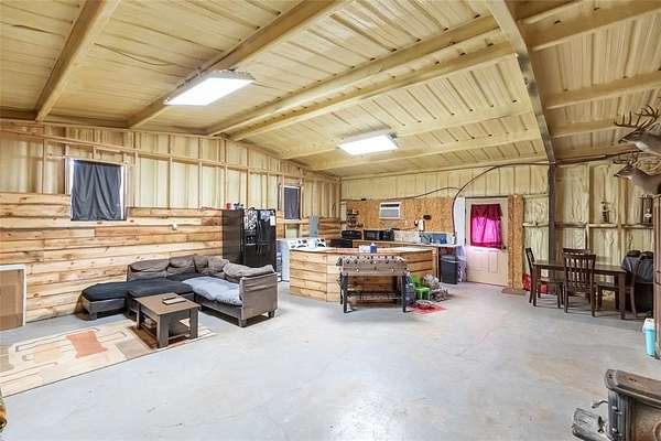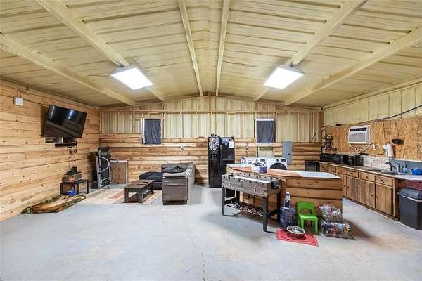 Discover the perfect blend of country living and wide-open space on this beautiful 74-acre property. Whether you're looking for a full-time residence, weekend getaway, or working land opportunity, this versatile acreage offers endless potential. The property includes a 2-bedroom, 1-bath barndominium, providing comfortable living with rustic appeal. In addition to the home, you'll find an unfinished log cabin structure, presenting an excellent opportunity to complete and customize additional living or recreational space, two water wells, a septic system, a barn, and a spacious garage--ideal for equipment storage, hobbies, or ranch operations. The land features a creek, tank and acreage that has been used for wheat in prior seasons. A deck designed for a 22-foot above-ground pool creates the perfect setting for outdoor relaxation and entertaining. With ample open space suitable for agriculture, livestock, or recreational use, this property also offers excellent opportunities for hunting and enjoying the outdoors. Whether you envision farming, ranching, or simply enjoying the peace and privacy of rural life, this 74-acre tract is ready to bring your vision to life.