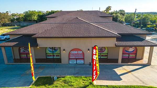 FOR SALE! Beautiful 2 story stucco commercial building sitting on three lots. Built in 2012, it is formerly operating as "Casino Cafe" mexican restaurant. You will be captivated by its spacious and amazing distribution. This property offers plenty of parking space (30 vehicles aprox). Main story offers enormous dining area, bar area that sits around 11-12 people, full service kitchen, and office space. It has 1 full bathroom and 3 half baths. Second story could be used as storage, event planning or living area. This place has a great potential for future investors! Excellent location with high traffic visibility. Very close to HEB, McDonald's, shopping centers, mall, retail stores and restaurants. ALL Restaurant equipment/inventory not conveyed with the sale of the property but could be negotiable. For more information or to schedule your private showing please call listing agent.