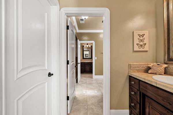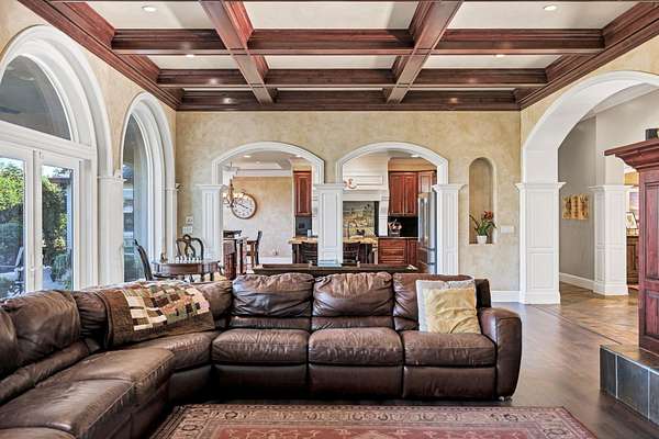 I-5 to exit 662 Lake California Dr, right on Del Mar Dr, continue to entrance gate, enter through gate, first left on River Downs Way, continue to property on left