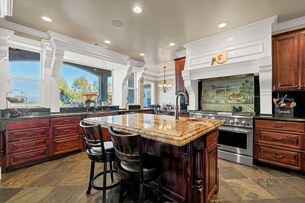 - Back Yard, Flat, Garden, Landscaped, Ranch, Rolling Slope, Trees, Views