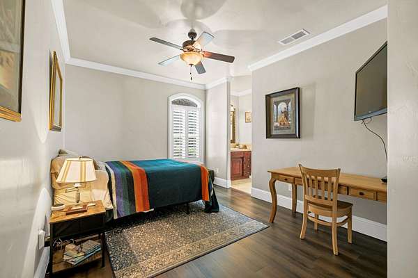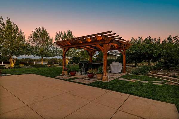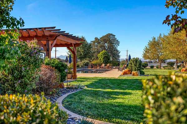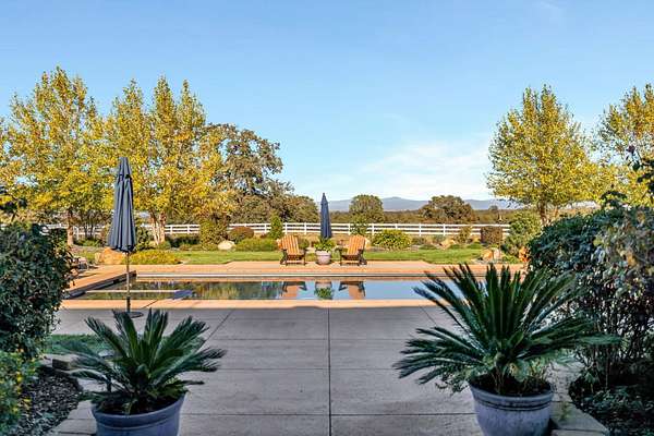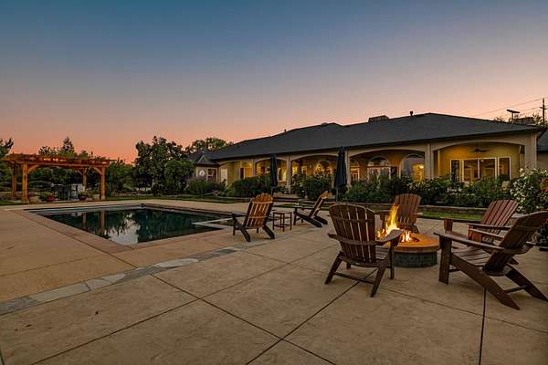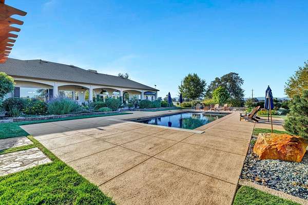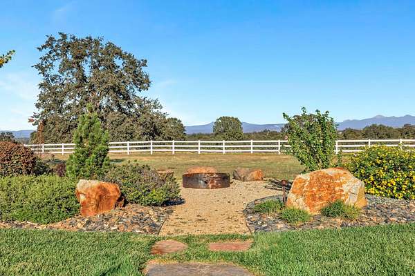 Luxury privacy & usable land inside the gated Sunset Hills community. This custom single story home is 3,209 sqft on 10+ fully fenced and cross fenced acres with a private gated entrance, newly installed hog fencing and total seclusion. The views are dramatic with rolling hills, seasonal foliage, valley scenery and views of Mount Shasta & Mount Lassen. Inside the home feels grand with tall ceilings, exposed beams, a spacious great room and large windows that frame the landscape like artwork. The layout offers 3 bedrooms plus an office, 2 full and 1 half bathroom and a 3 car garage. Off of the garage is an additional office space. The backyard is designed for resort style living with a brand new inground pool and spa, multiple outdoor patios, two fire pits, pergola, BBQ area, outdoor lighting and foliage planned so something is always blooming. The land runs down to the North Fork of Patterson Creek creating unmatched privacy. Hours can pass without seeing a single car. The property includes paid for solar, battery back along with back up generator and Starlink internet. Ready for equestrian or hobby ranch use with a 3 stall barn equipped with water and electric, tack room, paddocks, pasture, water access, private well, fruit trees, olive orchard, chicken coop and a direct trail easement to miles of riding trails. Equipment can be negotiated with Kubota tractor ATVs & more. A rare combination of luxury land views & true privacy yet only 20 miles to Redding 17 miles to Red Bluff and 10 miles to Anderson.