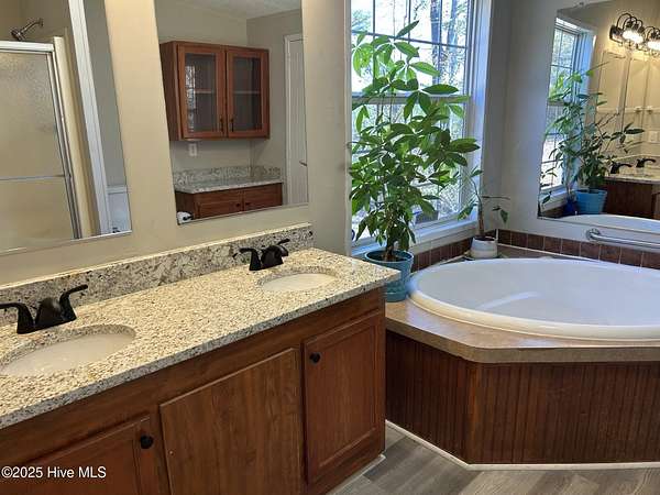 - Blinds/Shades, Ceiling Fan(s), Kitchen Island, Master Downstairs, Pantry, Vaulted Ceiling(s), Walk-In Closet(s), Walk-In Shower