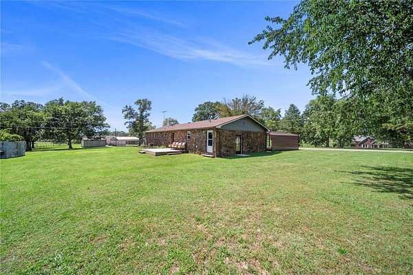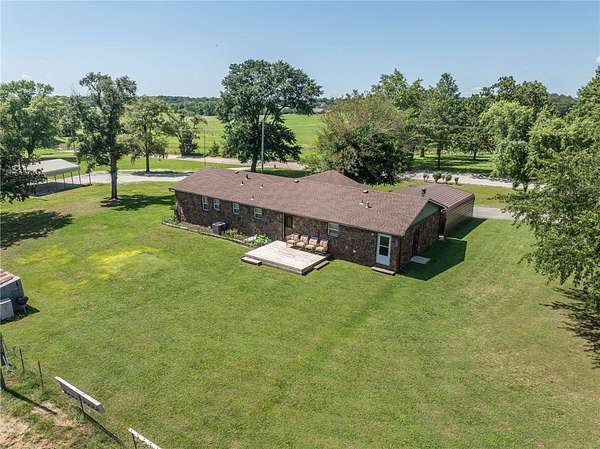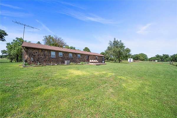 Don't miss your chance to own a piece of paradise! This spacious rock farmhouse has 3bds 2 bath and almost 2,000sqft. Plus, it sits on this beautiful, fully fenced 7.47-acre property that would be perfect for horses, cows, and chickens. The possibilities are endless.. The home features a covered front porch and, open back deck. It has two wells, both functioning and 1 with a new pump. Newer roof, carpet, windows, storm doors, insulation in attic, vapor barrier and insulation in crawlspace. New HVAC and water heater last year. Septic was pumped last year. Pasture is fenced on all sides, front yard is open. Located outside of Gentry city limits and only minutes to town, and main highways.