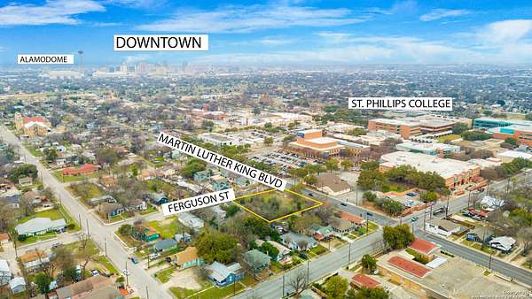ATTN INVESTORS, THE AMAZING OPPORTUNITY TO BUILD in one of San Antonio's current gentrification areas, Denver Heights!! A large corner lot strategically located directly across from St. Phillip's College, a short distance to the Alamodome & the Riverwalk. Witness the capitalization taking place...busy construction sites of completed & nearly completed living spaces! Downtown! Whether you envision professional offices, a medical clinic, or a multi-family project this property provides the ideal foundation to bring your vision to life.