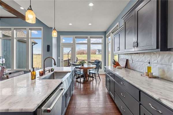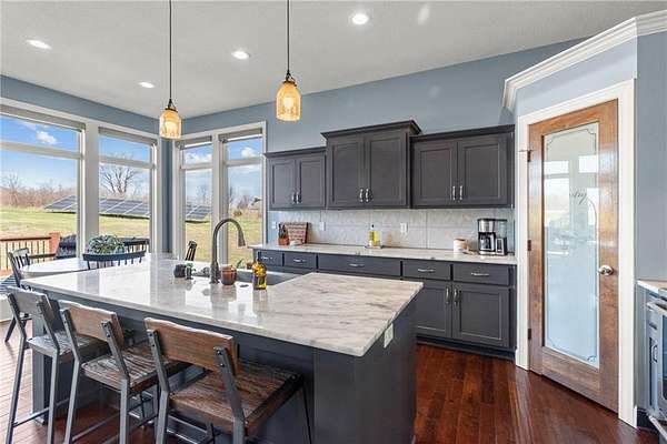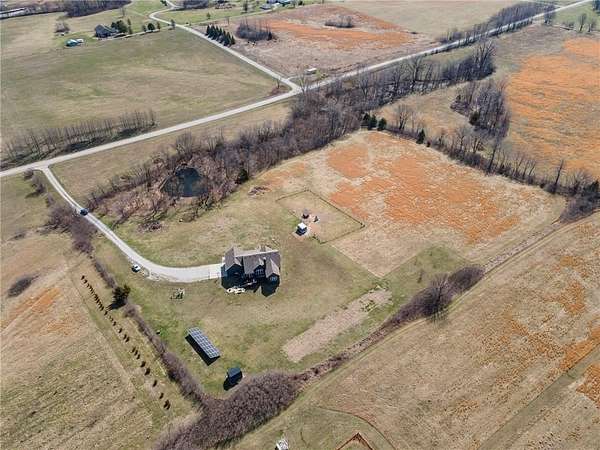 Situated on a scenic 10.97-acre lot, this beautiful home offers modern amenities in a serene, private setting featuring a whimsical treed drive and a shaded pond. The home has been recently updated with a newly painted interior, polished floors, and fresh exterior stain. Key features include: - Interior: Solid wood double front doors, hardwood floors, marble countertops, a walk-in pantry, and an open floor concept. - Master Suite: Large windows for natural light, a master bath with dual vanities, a bathtub, a walk-in shower, and a towel warming rack. The master closet includes custom organization and connects directly to one of two laundry rooms. - Additional Space: Three spacious bedrooms with oversized walk-in closets, two additional full bathrooms, and a large downstairs recreational room. - Sustainability & Convenience: The home is 100% electric, equipped with solar panels to offset utility costs, and includes EV charger capabilities in the garage. - Outdoor Amenities: The property includes outbuildings and a coop with a fenced area, perfect for a small farmstead. The septic system has been recently serviced, and the home is move-in ready. Come and claim your slice of serenity today!