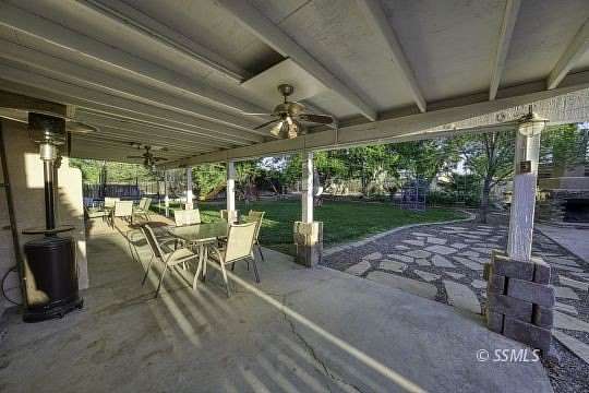 - Automatic Sprinklers, Corner Lot, Covered Patio, Deck(s), Full Fenced, Full Landscape, Garden Area, Horse Property, Lawn, R V/ Boat Parking, Satellite Dish, Storage Shed, Trees, Uncovered Patio, View of Mountains, Workshop