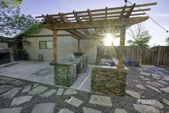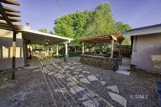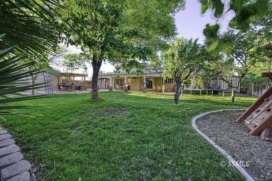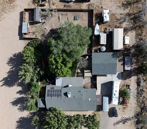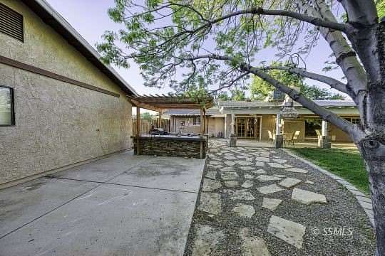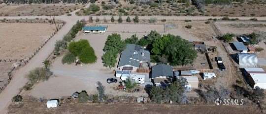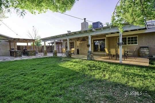 Situated on 2.52 acres, this property offers space, function, and endless possibilities. Zoned for horses and complete with an owned well and paid solar, it is set up for both comfort and lifestyle. The home features two living areas, a gorgeous kitchen with granite counters and a pantry, an indoor laundry room, and a guest bathroom with a ton of room and light. The primary suite offers a large walk in closet, dual sinks, new vinyl plank flooring, and is a comfortable private retreat. Outside is where this property really shines. Mature trees create a beautiful setting in both the front and backyard. Enjoy evenings by the outdoor fireplace or entertain with the outdoor kitchen area while over looking lush green grass. Beyond the tree line, you will find a chicken coop and a large open dirt area ready for whatever you can dream up.The detached 3 car garage includes additional hobby space and a brand new roof, plus there is a separate workshop behind the detached garage with electricity that is perfect for woodworking, storage, or projects. A rare combination of usable land, upgrades, and charm!