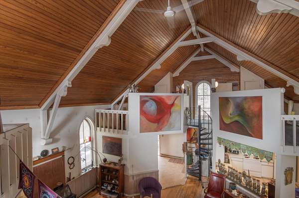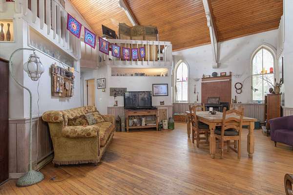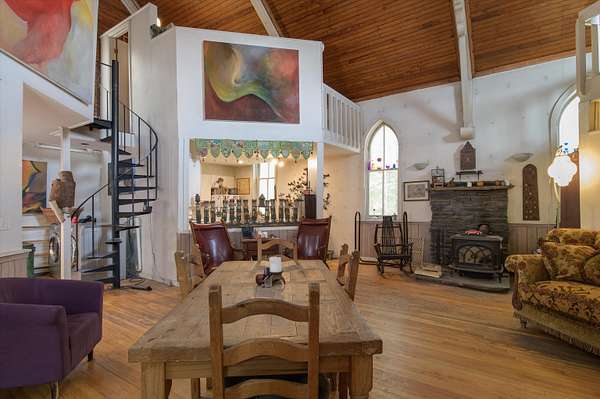 Historic 1876 church, formerly known as the Union Church of Heartwellville, offering a rare blend of preserved character and updated functionality. Original architectural elements remain, including the bell and belfry, while the interior has been renovated to provide an open-concept layout that still reflects the traditional church design. With its unique layout and destination-worthy setting, this property presents exciting potential as a one-of-a-kind short-term rental or Airbnb opportunity. Conveniently positioned near MASS MoCA and the shops and dining of North Adams, with easy access to year-round recreation. A portion of the land is located across the road with views to the Deerfield River and it cannot be developed.