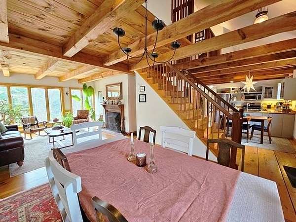 Set on 14.1 +/- stunning acres in a picturesque country setting, this Sullivan expanded Cape built in 1985 offers charm, privacy, and functionality. Surrounded by rolling pasture, mature woods, and classic New England stone walls lined with maple trees, the property features a fully functioning sugar shack—perfect for making your own syrup! Inside, the post-and-beam design showcases exposed beams, wide pine floors, and warm natural light throughout the main level. The spacious living room overlooks a private backyard oasis with hot tub, ideal for relaxing or entertaining. The country-style kitchen is both inviting and practical. The flexible layout includes three bedrooms, each with its own bath, and the option for a first- or second-floor primary suite. Large enclosed porch for gatherings and relaxing afternoons. Additional rooms provide great space for a home office, guests, or hobbies. Passive solar design enhances efficiency and comfort year-round. The walkout lower level offers a mostly finished recreation room, additional sleeping area perfect for guests, and workshop space. A large two-bay garage with second-story storage adds versatility. Outside, enjoy abundant gardening space, a chicken coop, and open land perfect for recreation or animals, all in a peaceful, private setting. Multiple sources of heating including oil fired boiler, new heating/AC electric pump system, wood fireplace and woodstove and passive solar. Recently added Central Air! A truly special property offering space, character, and tranquility. No closing prior to June 1, 2026.