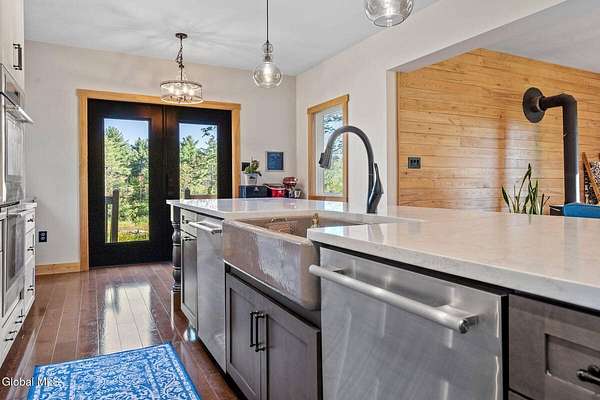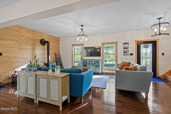 Luxury country living on 40 acres. This 2,800 sq. ft. smart home blends sustainability with high-end design, powered by solar and geothermal energy with three Nest zones for efficient, year-round comfort. Featuring 4 bedrooms and 4 custom bathrooms, with hardwood floors and custom ash trim throughout. The chef's kitchen includes 9' ceilings, a 14' quartz island, dual sinks and dishwashers, Thermador appliances, induction cooktop, pot filler, and double ovens - ideal for everyday living and entertaining. The newly renovated primary bath (February 2026) offers a clawfoot tub and private water closet. The living room features a Hearthstone wood stove and ash accent wall, with the added benefit of sourcing firewood directly from the property. Fully equipped for lifestyle and function with two wells, four livestock areas, a horse shed, and a 30' x 32' pine-sided barn (March 2026). 200-amp service plus additional 100-amp panel. Spectrum Broadband available. A private, turnkey retreat combining efficiency, design, and country living.