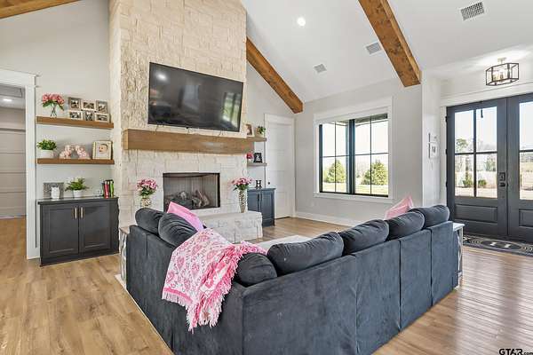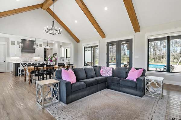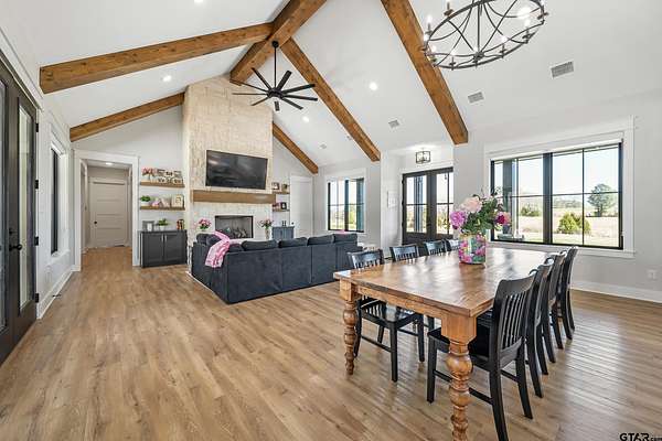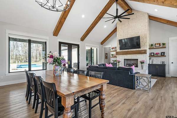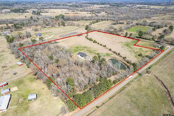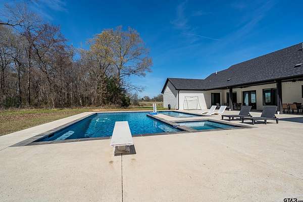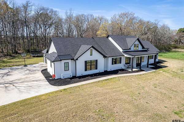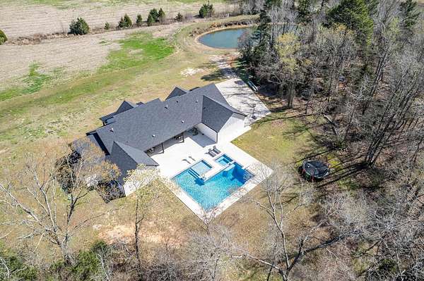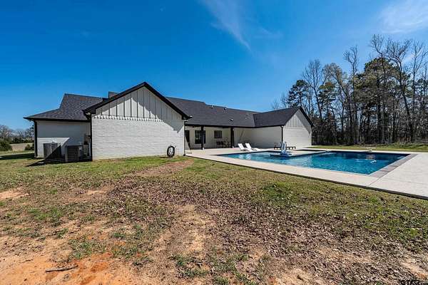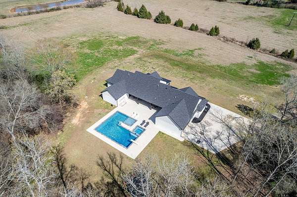 Welcome to your private East Texas retreat at 192 CR 4707 in Troup, TX, where modern luxury meets the beauty and tranquility of wide-open country living. Nestled on 21+ picturesque acres, this exceptional 2022 custom-built home offers over 3,000 sq ft of thoughtfully designed living space surrounded by rolling pasture, peaceful views, and abundant wildlife. Inside, the home features 4+ bedrooms, 2.5 baths, and a 2-car garage, with a split-bedroom floor plan that provides comfort and privacy. The stunning vaulted ceiling welcomes you in as the large windows allow a stunning view of the sparkling pool and an abundance of natural light fills the room. The spacious layout also includes a bonus media room/game room/second living area, ideal for entertaining, movie nights, or gathering with friends and family. The luxurious owner’s retreat is a true sanctuary, highlighted by vaulted ceilings and serene views overlooking the pool. The owner’s ensuite features a large walk-in closet and a beautifully appointed bath designed for relaxation. Two additional bedrooms share a well-designed Jack-and-Jill style bathroom complete with double sinks and a tub/shower combo with custom tile work. Step outside to your own resort-style backyard oasis. The custom pool, built in 2023, features a hot tub, heater, sun deck, expanded pool decking, and a spacious covered patio, creating the perfect setting for outdoor entertaining or peaceful evenings under the East Texas sky. Beyond the backyard, the property unfolds into 21+ acres of scenic countryside. Enjoy fishing in the stocked pond filled with bass, crappie, and catfish, exploring the land, or simply soaking in the privacy and beauty of ranch living. The stars at night really are big & bright at this peaceful country estate. This stunning property offers the rare combination of luxury, land, and lifestyle—all just a short drive from town. Your dream farm and ranch escape awaits. Attendance in Troup ISD is available if desired.