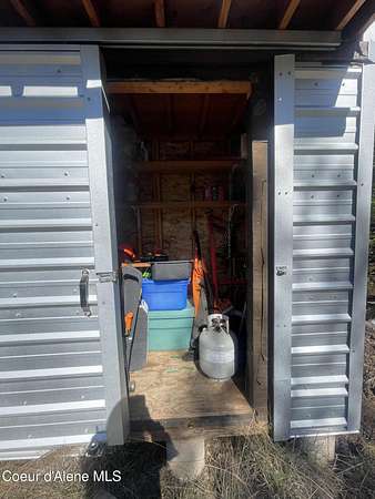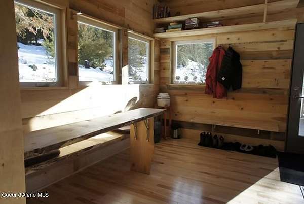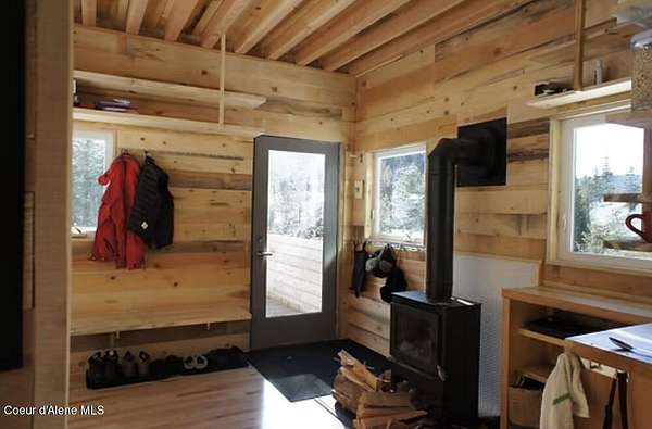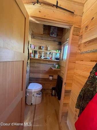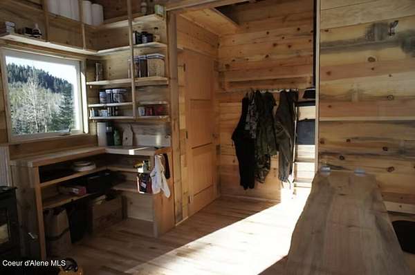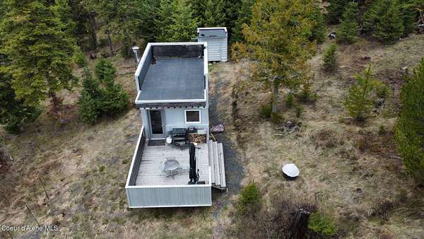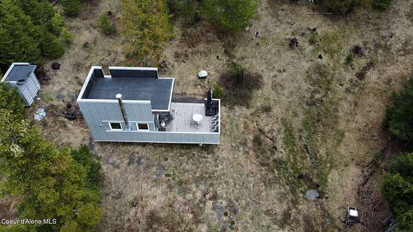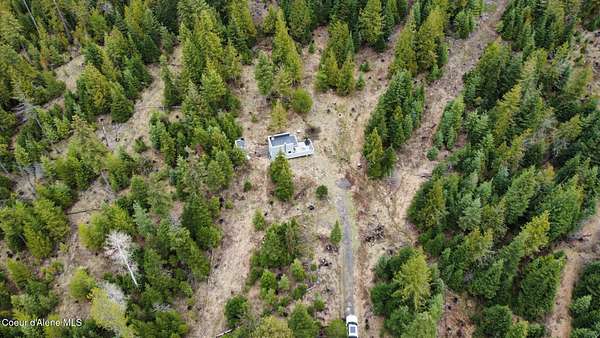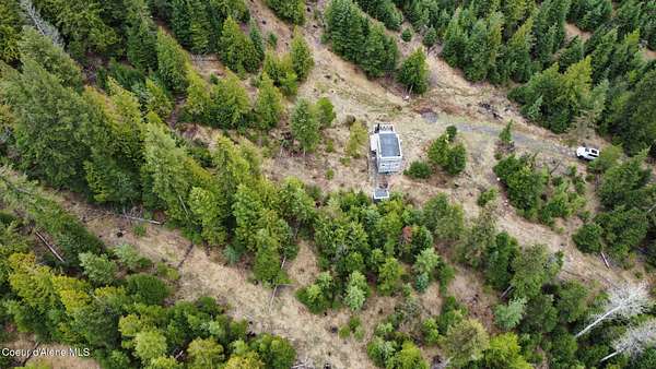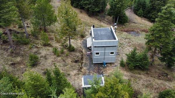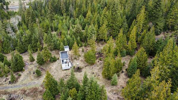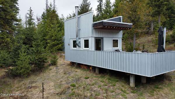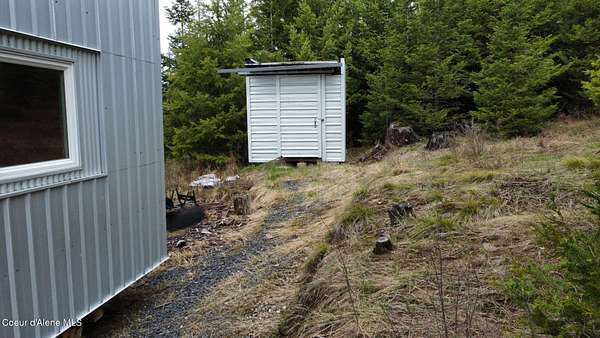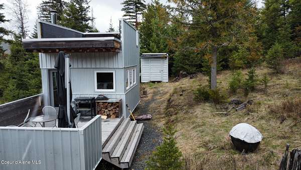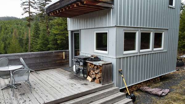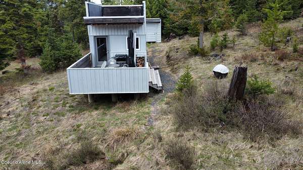 Welcome to this thoughtfully designed off-the-grid cabin on over 17 acres bordering Idaho State land. Just a short drive off the highway, you'll be immersed in a peaceful and private forest setting. Concrete columns float the cabin above the snowline, creating covered storage for firewood. Substantial insulation keeps the cabin cool in the summer and cozy in the winter with a wood-burning stove. A built-in folding table and benches allow the space to quickly transform from sleeping to dining/living. Built-in storage accommodates fold-out sleeping pads & everyday essentials. An adjoining bathroom provides privacy and a composting toilet. The outdoor deck offers a space for cooking, dining, relaxing, & enjoying views of the surrounding hills. A shed provides additional storage. The property features a seasonal creek, abundant wildlife, prime access to hunting, skiing, and recreation near the Palouse Divide. Power is nearby & a neighboring well offers future potential.