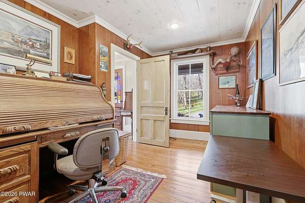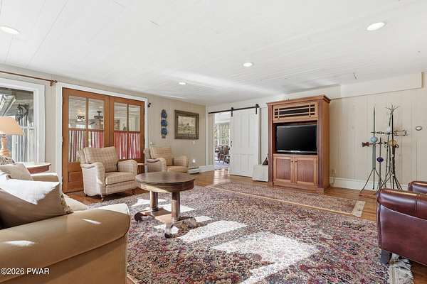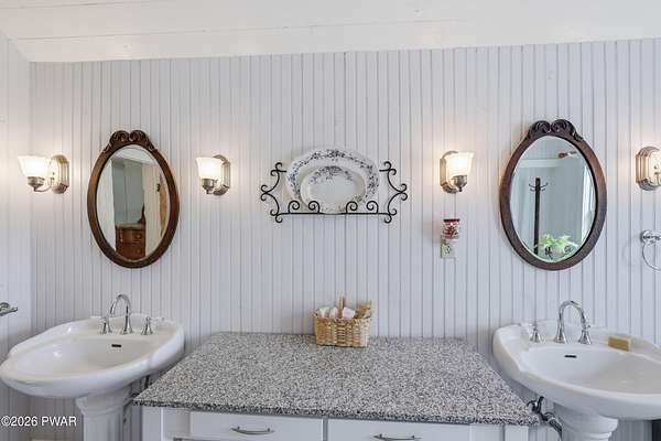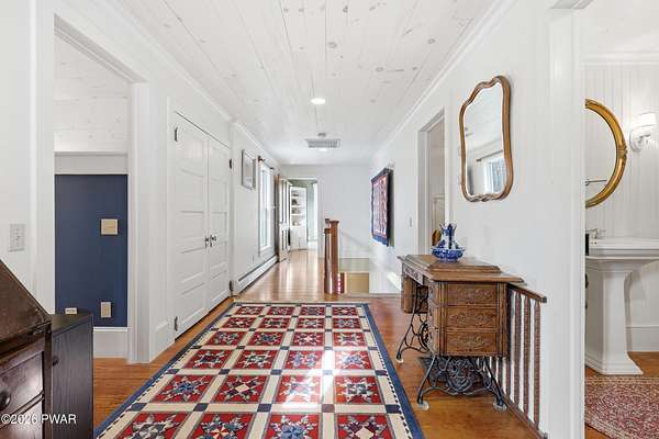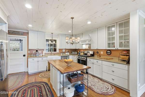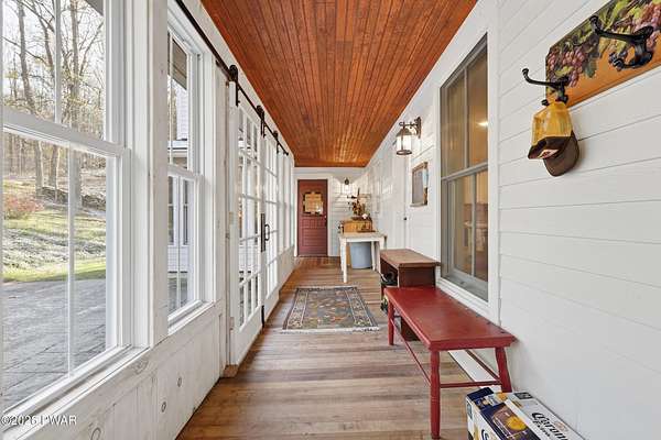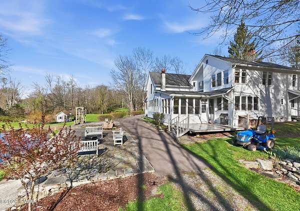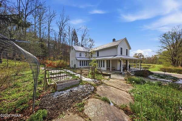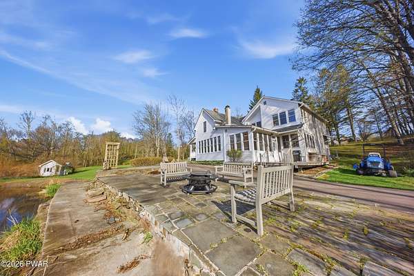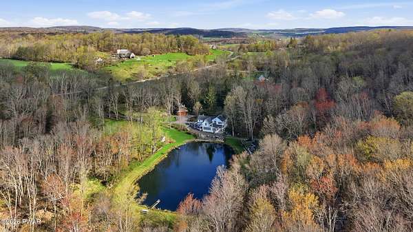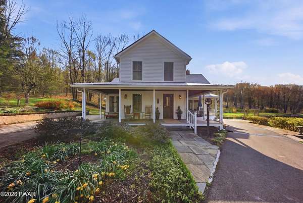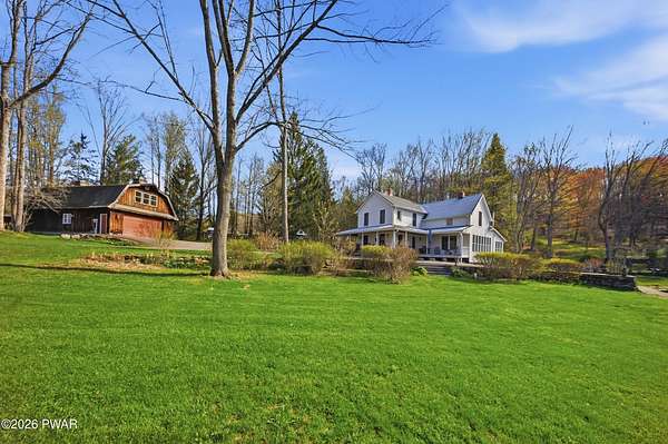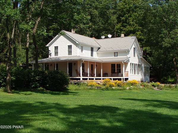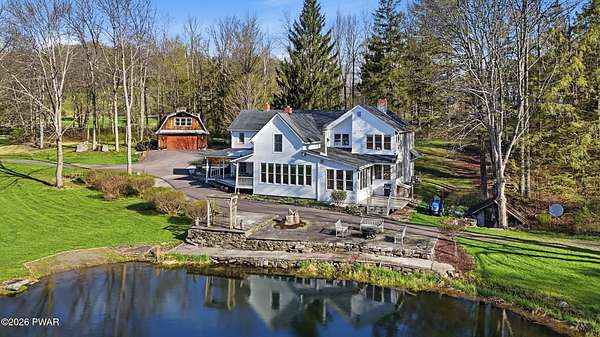 FALLSDALE - 25 ACRES - FARMHOUSE - BARN - GUEST HOUSE - POND - Welcome to 192 Fallsdale Road--an extraordinary private estate set on 25 acres of rolling, open and wooded landscape, complete with a serene 2/3 acre pond. Originally built in 1890, this classic farmhouse has been meticulously rebuilt and renovated in 2007 by its current owner/builder, blending timeless architectural charm with modern construction standards and comforts.This light-filled, two-level home offers picturesque green views from every room. Original character has been thoughtfully preserved, including restored doors and stained-glass windows, while upgrades throughout ensure effortless modern living. Features include yellow pine hardwood floors, oversized windows, and beautifully remodeled kitchen and baths with high-end finishes. Enclosed porches on both sides invite year-round enjoyment of the peaceful surroundings.The spacious chef's kitchen is a standout, featuring quartz countertops, a large wood island, pantry, and space for a commercial-grade refrigerator. The open floor plan seamlessly connects the kitchen, dining, and family room--perfectly oriented to capture tranquil pond views.The main level also includes a private office, large laundry room, full bath, and ample storage. Upstairs, you'll find four bedrooms and two full baths, including a generous primary suite with an en suite bath featuring an antique clawfoot tub.Additional features include an unfinished attic and basement housing utility systems, radiant floor heating in the main living areas, baseboard heat throughout, a propane fireplace for ambiance, backup wood stove, exterior wood-burning furnace, standby generator, central air, Navien tankless water heater, and a new roof.Make arrangements today for a private showing!
