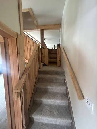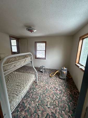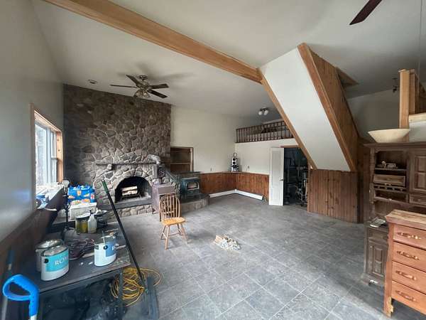 Privacy awaits with this spacious 4-bedroom, 2-bath two-story home set on 20 acres, accessed by a long private driveway. Inside, you'll find a spacious family room with a beautiful stone fireplace, perfect for wood burning or a wood stove is included. A front den features knotty pine walls and ceilings, along with a convenient laundry area with tile flooring. The large eat-in kitchen offers plenty of space, with solid wood cabinetry and tile floors, plus a full bathroom on the first floor. Upstairs, there are 4+ bedrooms and a second full bathroom, providing flexibility for a growing family, home office, or guest space. Outside, enjoy the peace and privacy of your own land, complete with a pole barn and the option to purchase additional acreage. Will need to be cash or conventional financing only.