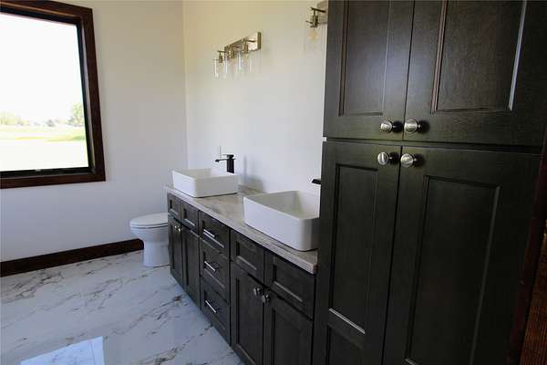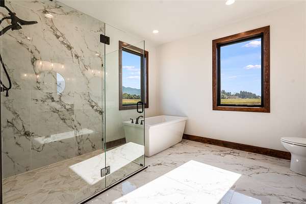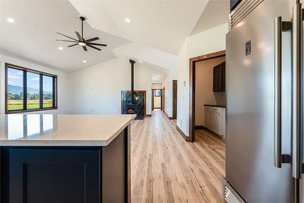 Brand-new construction in the desirable Glacier Flats neighborhood! This thoughtfully designed 3-bedroom, 3-bath home offers modern Montana living with style and comfort. The open-concept floor plan features vaulted ceilings, large windows for natural light, and seamless flow between the kitchen, dining, and living areas. The kitchen is a showpiece with quartz countertops, stainless steel appliances, and a large island perfect for gathering. The spacious primary suite includes a walk-in closet and a beautifully tiled ensuite with dual vanities and a walk-in shower. Two additional bedrooms and a full guest bath. Energy-efficient construction with upgraded insulation, high-efficiency furnace, and modern finishes throughout. Attached 3-car garage for convenience. There is a leveled pad for your future shop or barn plans. Located minutes from downtown Kalispell, schools, airport, and recreation - plus easy access to Glacier National Park, Flathead Lake, and Whitefish Mountain Resort.
