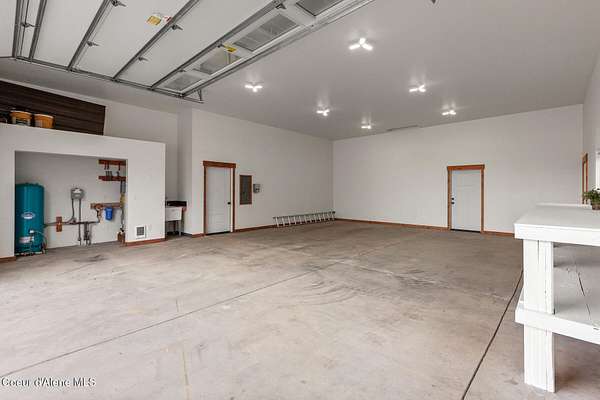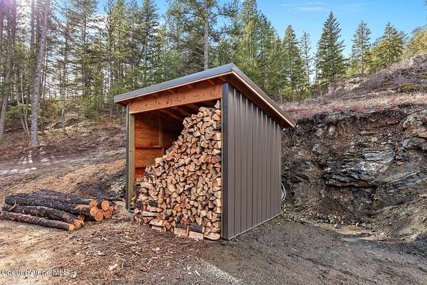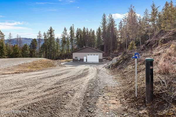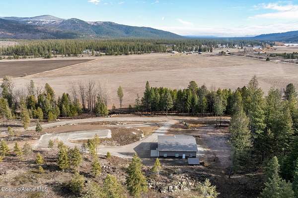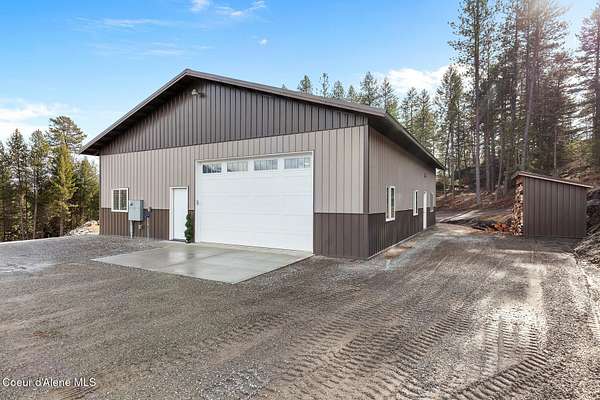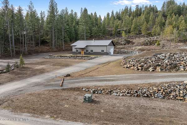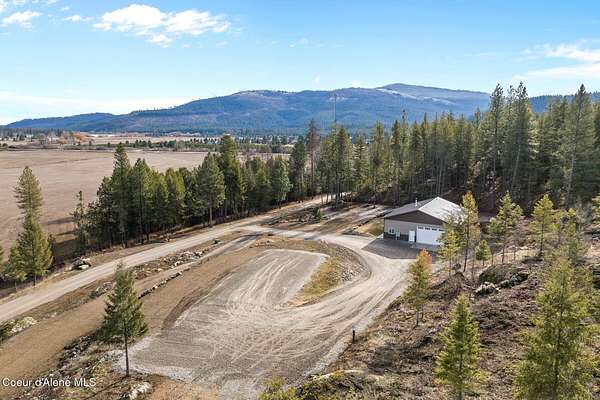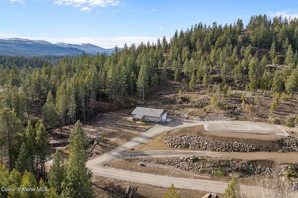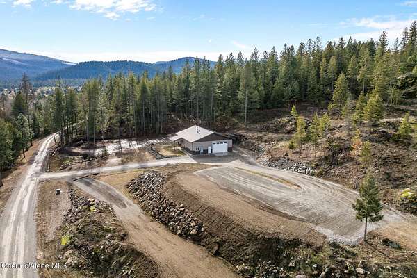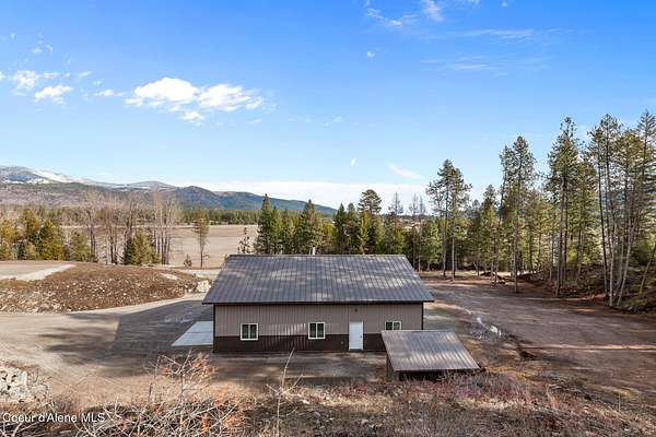 Welcome to 192 Healing Drive in the desirable Nelson Heights Subdivision This exceptional, move in ready, custom craftsman barndominium is designed for those who value privacy, quality construction, attention to detail. Built in 2023, this 2-bedroom, 1-bath residence offers 930 square feet of beautifully finished living space within a 40' X 50' footprint, including an expansive 1,000 square foot garage. Situated at 2,500 feet elevation on 5.04 surveyed and staked acres (approximately 450' X 450'), the property captures panoramic breathtaking mountain and sweeping valley views,. The private and serene natural surroundings create a peaceful, rural life that allows you to be one with nature. It is located minutes from the coveted Stoneridge Golf Living Community. This property is complete with septic approval, power, water access, and a sited house pad--ideal for a future residence, guest home, or legacy compound. Designed for main-floor living with an open-concept layout, the home features 12-foot ceilings, recessed lighting throughout, and abundant natural light. Hardwood and LVP flooring, 4' wide alder doors, and red cedar-trimmed windows create warmth and architectural continuity, while Anderson double-pane windows and a tightly sealed 2x6 framed structure ensure energy efficiency and comfort year-round. The great room is anchored by a Kuma wood stove with tiled hearth and triple-wall pipe, complemented by a mini-split system for efficient heating and cooling. The vaulted ceiling and craftsman alder front door add character and presence. The kitchen reflects both beauty and function, showcasing 36" custom D&S alder soft-close cabinetry, leathered granite countertops and backsplash, crushed granite sink, under-cabinet lighting, and GE appliances with a Samsung refrigerator. Every detail has been selected for durability and timeless appeal. The hall bath offers a granite-topped vanity, a comfort-height toilet, and a step-in tiled shower with a sloped drain. The guest bedroom/office provides flexibility for remote work or visitors. The primary bedroom features a ceiling fan with a remote and efficient closet space. The fully finished, insulated garage is a rare asset with 12-foot ceilings and a 16' x 10' remote door. Outfitted with 220 amp service (welder-ready), generator wiring, dual 50-gallon hot water tanks, deep utility sink, Culligan water filtration system, Pentair Pentek pump, labeled panels, and workshop space--this is a true work-play environment. Additional features include: "400-amp service with buried powerlines "40 GPM well, 240' deep, set at four seams of water within the aquifer "1,900-gallon Panhandle Health-approved septic system "70+ llb per square inch snow-load trusses "Metal roof (upgraded peel-and-stick underlayment) and low-maintenance metal siding "Rockscaped drainage and newly planted grass "10' covered concrete patio "Hot tub-ready wiring (110 volts and 220 volts) "12' x 10' woodshed (holds 5.6 cords) Waterfowl and other wildlife--eagles, elk, moose, osprey, turkeys, and white-tailed deer--creating a truly immersive North Idaho experience. Two additional adjacent 5.04-acre parcels (Lots 2 & 3) are available. Centrally located between Coeur d'Alene and Sandpoint. Spokane Airport is an hour away. Truly a magnificent Barndominium with limitless possibilities.
