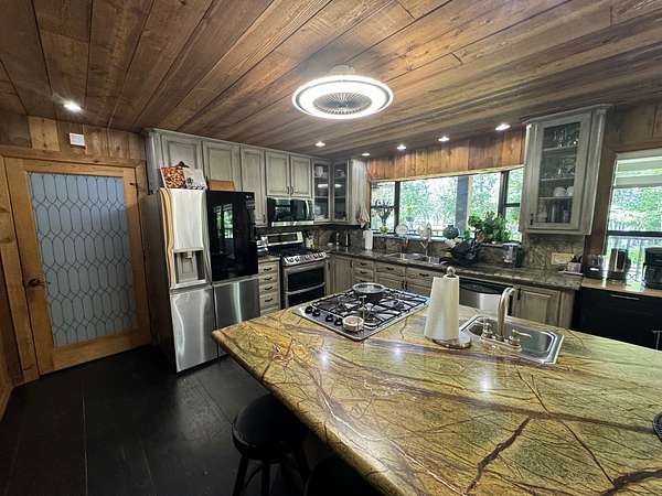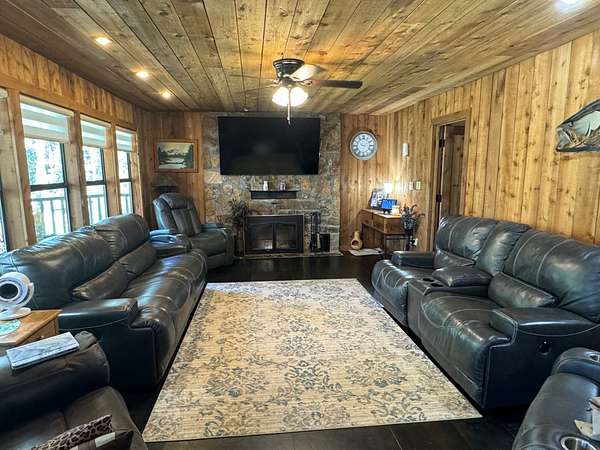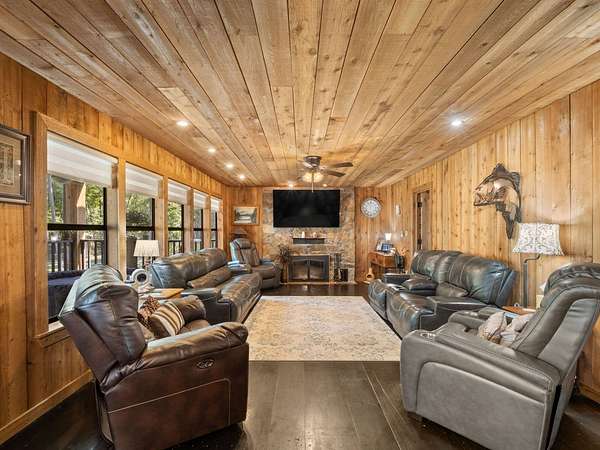 Stunning Waterfront Retreat 5 Bed, 4 Bath | 3100 Sq Ft on 2 Acres 192 Hood Blvd., Florien, LA 71429 Welcome to this beautifully upgraded and meticulously maintained two-story cedar home, offering over 3,100 sq ft of refined living space and nestled on 2 acres (with 1 acre cleared) on the beautiful Toledo Bend Lake. Built in 1997 and fully remodeled, this home blends rustic charm with modern comforts, designed for full-time living, vacationing, or entertaining in style. Interior Features: 5 spacious bedrooms 4 full bathrooms (2 showers, 2 tubs, one is a jacuzzi) 2 generous living rooms for flexible space and entertaining. Western red cedar interior and exterior for timeless character. Old-growth longleaf pine flooring throughout Flagstone fireplace with gas lighter for cozy evenings Kitchen includes: 1 new gas stove with double oven. 1 countertop gas stove. 1 new double-door refrigerator + 1 additional refrigerator. New microwave. Quartz countertops Recent Upgrades & Infrastructure: Home was leveled in 2022. All new PEX plumbing installed. Two new electric water heaters (2022). Metal roof for long-lasting durability. Whole-house automatic generator (8 years remaining on 10-year warranty). Two propane tanks, with one dedicated to the generator for independent operation. Three central AC units: brand new 5-ton, a 3-ton, and a new 2-ton. 5 new windows installed across the front of the home. Outdoor Living at Its Finest: All lake-facing walls are full of windows for breathtaking views and natural light. 10' x 70' covered back porch with hot tub + matching 10' x 70' upper balcony. Three flagstone patios with seating for entertaining or unwinding outdoors Flagstone walkway from the front yard around the home and down to the water. Flagstone driveway with limestone circle drive. Floating dock provides lake access. Fish cleaning station with bathroom and shower. Outbuildings & Extras: New 24' x 35' shop with concrete slab and 14' peak metal roof 28' x 25' cement carport for additional covered parking or boat storage. Located in a quiet, friendly neighborhood with great neighbors. AT&T fiber internet currently being installed for fast, reliable connection. This rare waterfront gem offers luxury, peace, and practicality ready for lakeside living at its finest. Whether you're looking for a forever home or the ultimate weekend getaway, 192 Hood Blvd. is the complete package. Contact me today to schedule your private showing!