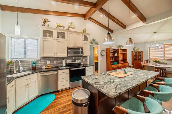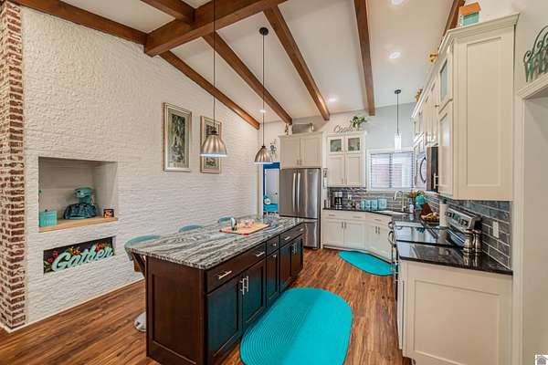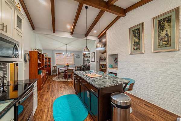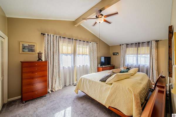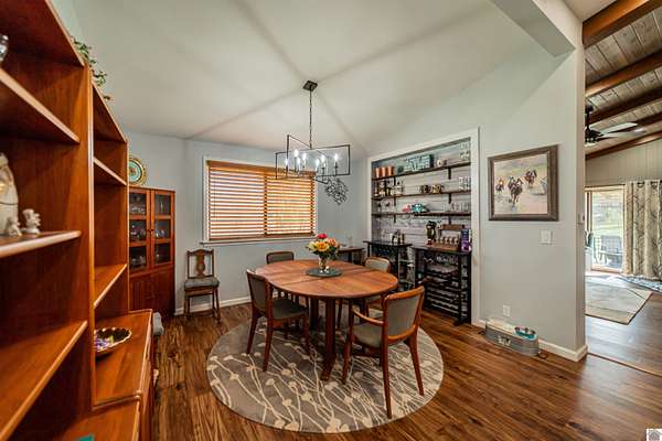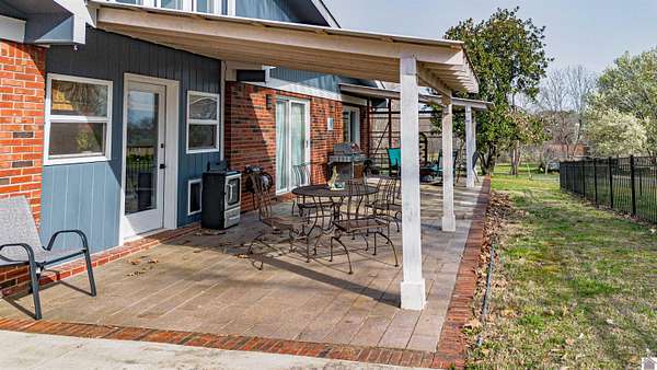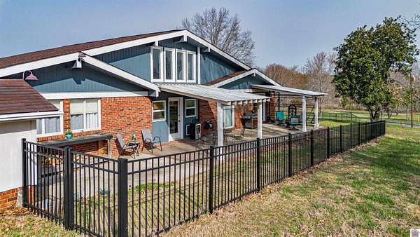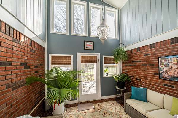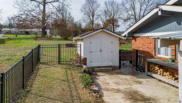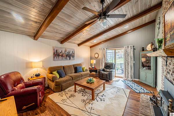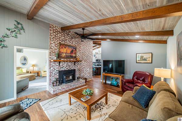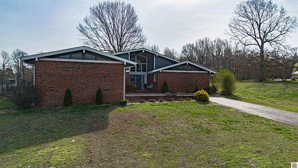 Architect-designed, custom-built mid-century modern home in the Kentucky Lake area offering space, character, and quality updates throughout. This 3 bed, 3 bath home is move-in ready and features Anderson triple-paned windows and soaring vaulted ceilings that create a bright, open feel. The large kitchen provides plenty of room for cooking and gathering, while the cozy den with a wood-burning fireplace insert is perfect for relaxing on cooler evenings or heating up the home. The living room features an electric fireplace for added warmth and charm. Enjoy the outdoors from the inviting 3-season room overlooking the large fenced yard. Situated on three lots totaling approximately 1.55 acres, the property offers room to spread out while still being close to Kentucky Lake. Attached garage for convenience and storage. A unique opportunity for a full-time home or lake-area retreat. Assumable mortgage at a very low interest rate for part of purchase.