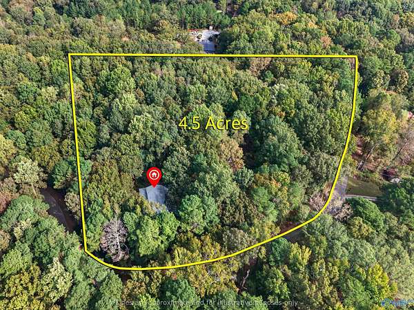 Discover an exceptional custom-built home nestled on 4.60 private, wooded acres just 15 minutes from I-65 and approximately 25 minutes from Redstone Arsenal. Timeless hardwood floors flow throughout most of the home, complementing an elegant living room with French doors that open to a sweeping wrap-around porch overlooking the peaceful landscape. The fully finished walk-out basement includes a bedroom, bathroom, and kitchen-ideal for guests, extended family, or a private suite. This property offers a rare blend of privacy, quality craftsmanship, and everyday convenience.