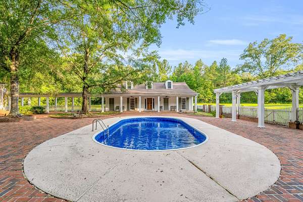Seller is offering an allowance toward buyer's desired updates with an acceptable offer. This traditional hilltop home blends timeless charm and character with modern amenities. The serene drive opens to a beautiful pasture, which makes for the perfect front porch views. Authentic wood floors and natural light flow throughout, complementing classic architecture and timeless finishes. Four bedrooms, each with an ensuite bathroom, ensure comfortable living. From formal living and dining rooms with fireplaces to the relaxed den/keeping room, connecting the home to its amazing outdoor spaces, this one is a dream on 16 acres! The expansive back porch and grounds invite you to relax, enjoy the pool, host gatherings, and anything else your heart desires. A perfect blend of heritage and comfort.