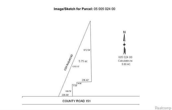 860-117 1033-125 1039-563 SEC 5 T8S R8E 5.75 A COM 1325.46 FT S 88 DEG 31' W & 225 FT N 1 DEG 05' W FR SE COR OF SEC 5 TH S 88 DEG 31' W 236.42 FT TH S 1 DEG 29' E 34.99 FT TH S 88 DEG 31' W 71 FT TH S 1 DEG 29' E 189.76 FT TH S 89 DEG 27' W 226 FT T H N 22 DEG 52' E 1310.13 FT TH S 1 DEG 05' E 972.54 FT TO POB.