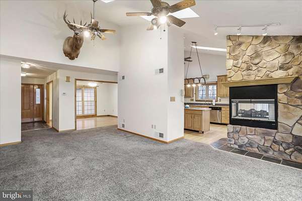 Welcome to this stunning ranch-style home situated on 80 breathtaking acres at 19200 Bowen Lane SE in Oldtown, Maryland, where privacy, space, and scenic mountain views create a truly exceptional setting. This beautiful home features 3 bedrooms and 3 full bathrooms and offers spacious living areas designed to capture the surrounding natural beauty. The large living room boasts vaulted ceilings, skylights, and expansive windows that frame the panoramic mountain views, and filling the space with natural light. A double-sided gas fireplace provides warmth and charm between the living room and the kitchen. The gourmet kitchen is well-appointed with a wall oven, center island with cooktop, ample cabinetry, generous countertop space, and a dining area/breakfast nook. Double doors from the breakfast nook lead out to the deck, creating the perfect space to enjoy your morning coffee while taking in the scenic mountain views. The home also includes a separate formal dining room and a dedicated laundry room for added convenience. The primary bedroom suite offers a private retreat with a walk-in closet and its own private deck overlooking the scenic mountain views. The attached bath features a jetted soaking tub and separate shower, creating a relaxing spa-like space. The finished walkout basement expands the living space with a large recreation room featuring a gas stove, a wet bar, a full bathroom, and an additional room that can serve as a guest room, office, or potential fourth bedroom. In addition to electric heat, the home is equipped with a wood stove that is integrated into the HVAC system and is capable of burning both wood and coal, providing excellent heat efficiency while helping reduce electric costs. The HVAC system also includes a newly installed filtration system within the past year, and a sprinkler system is located in the utility room for added safety. A new well pump was installed approximately two years ago. Equestrian and hobby farm enthusiasts will appreciate the property's functional farm features, including a barn with electric service, fenced pasture, a frost-free waterer for livestock, and a run-in shed at the back with two outdoor stalls. There is also an 8x10 chicken coop, offering great options for small-scale farming or homesteading. With 80 acres of beautiful land and incredible mountain views, this property offers endless opportunities for privacy, recreation, and peaceful country living while still providing the comfort of a thoughtfully designed home. Schedule your showing today!