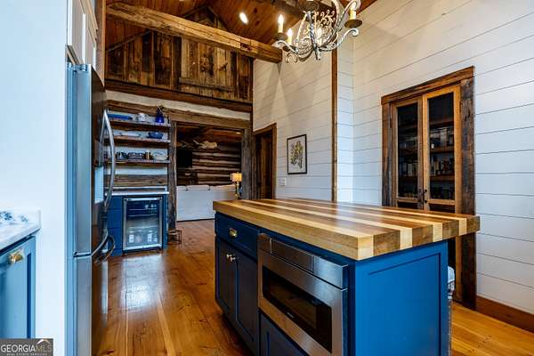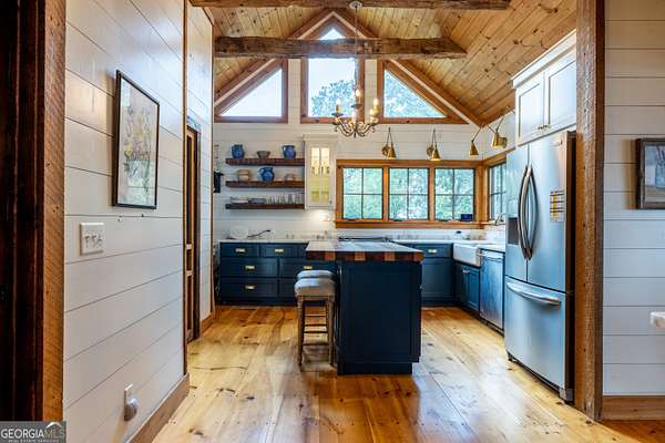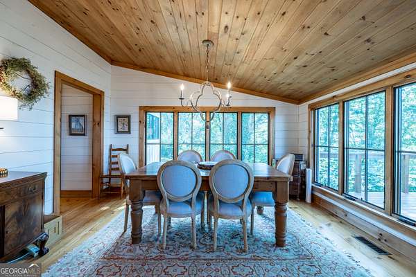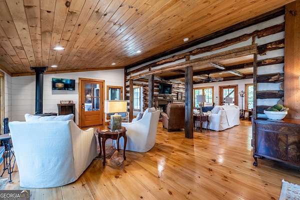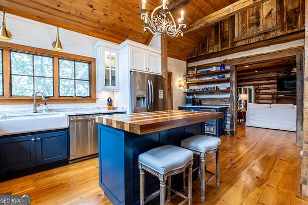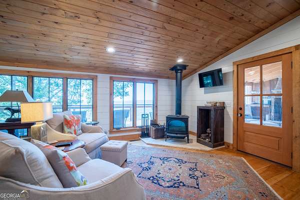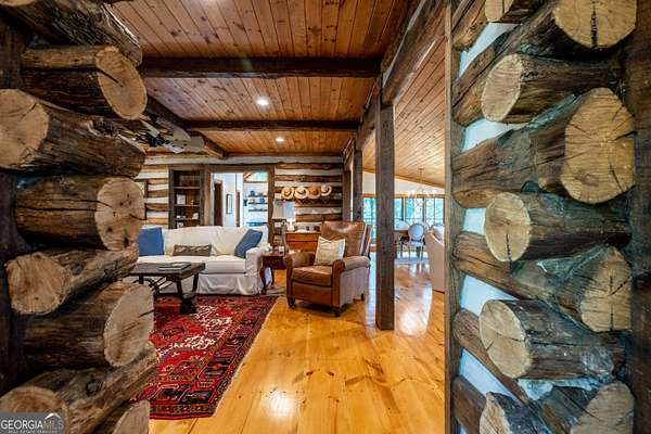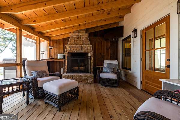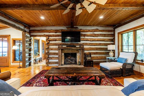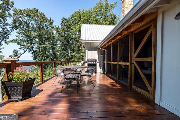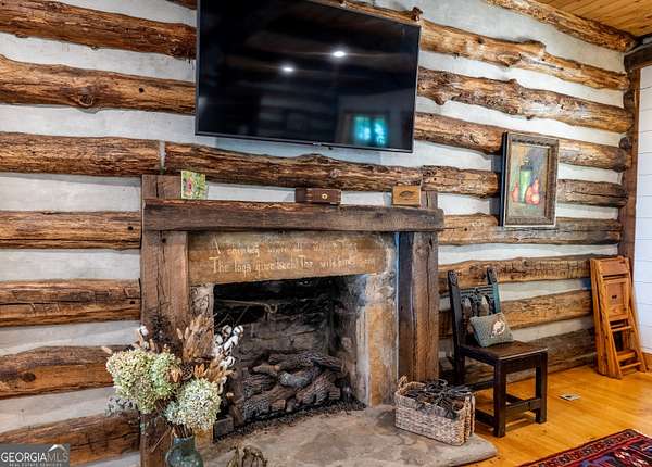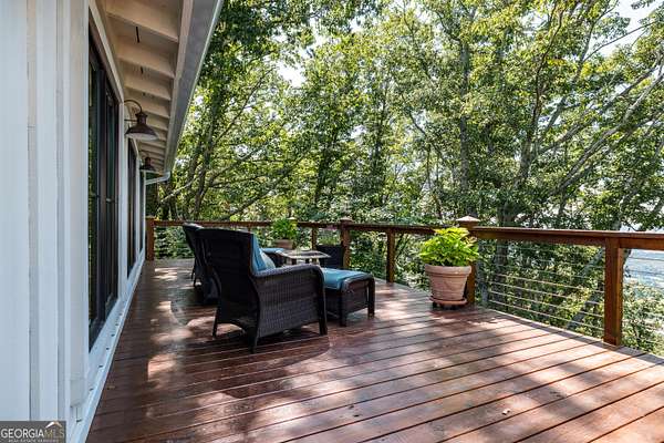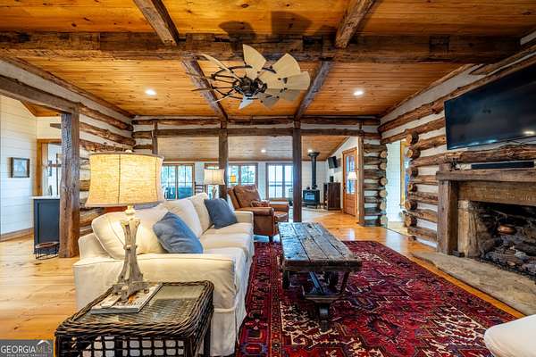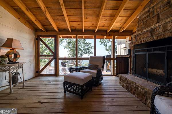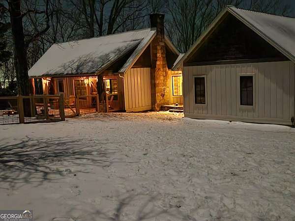 Birdsong Cottage Estate | Where history meets modern luxury on the brow. Thoughtfully expanded in 2019 around one of Mentone's original cabins, Birdsong Cottage Estate blends century-old craftsmanship with elevated, modern comfort. Perched on a 2.4-acre lot with approximately 170 feet of breathtaking west brow frontage, this furnished retreat offers sweeping sunset views and every amenity for luxurious mountain living. A charming patio entry leads through the foyer into a home filled with warmth, heritage, and hospitality. Step inside to discover original log beams, a handcrafted stone fireplace, and a seamless transition from historic character to new construction. Wide-plank 10" Eastern Pine floors run throughout the home, complemented by Jeld-Wen casement windows, gas heating, two tankless water heaters, and a security system for peace of mind. High-speed internet and TV are available and ready for use. The heart of the home-the kitchen-is a showstopper: vaulted ceilings, custom cabinetry, Dolomite countertops, a butcher block island, and premium appliances including a JennAir convection range, GE Profile dishwasher, Frigidaire refrigerator, beverage cooler, microwave drawer, and Kohler apron sink with Delta fixtures. The primary suite is a true retreat, offering a gas log fireplace and panoramic brow views with direct deck access. Enjoy two large walk-in closets, a linen closet, and a luxurious en-suite bath with heated tile floors, dual vanity, and oversized shower. A cozy guest bedroom and full bath provide comfort for visitors. Multiple living spaces invite relaxation and entertaining include a screened porch with stone fireplace, TV, and classic wicker furniture, a dining area and open-concept sitting room with an abundance of windows and a traditional living room with stone fireplace. Outside, a deck stretching across the back of the home delivers unmatched brow views, while a stone wall, lovingly crafted by mountain artisans decades ago, frames the landscape. The patio entry leads through the foyer into a home filled with warmth, heritage, and hospitality. A rare offering where history, design, and natural beauty converge.