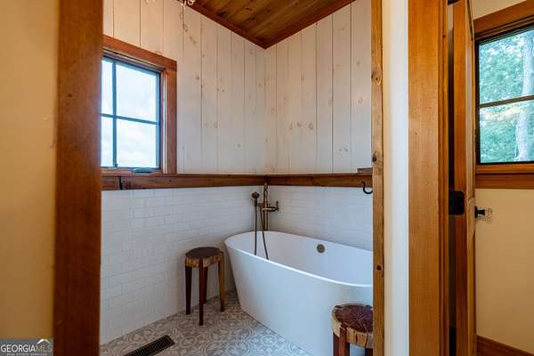 - Beamed Ceilings, Double Vanity, High Ceilings, Master On Main Level, Vaulted Ceiling(s), Walk-In Closet(s)