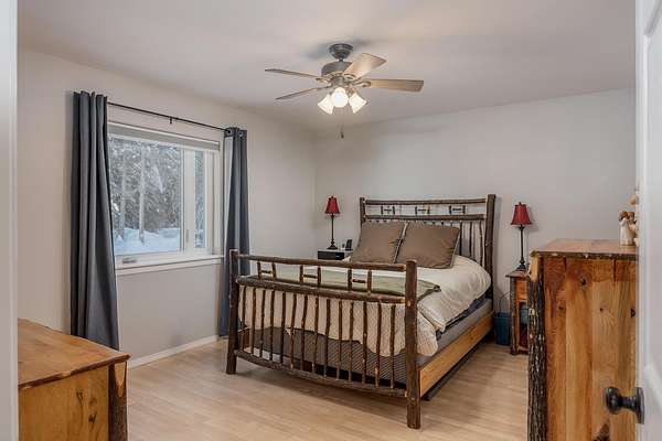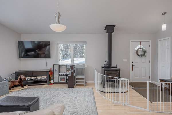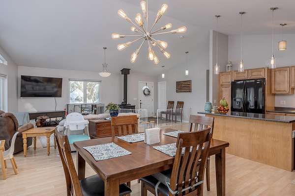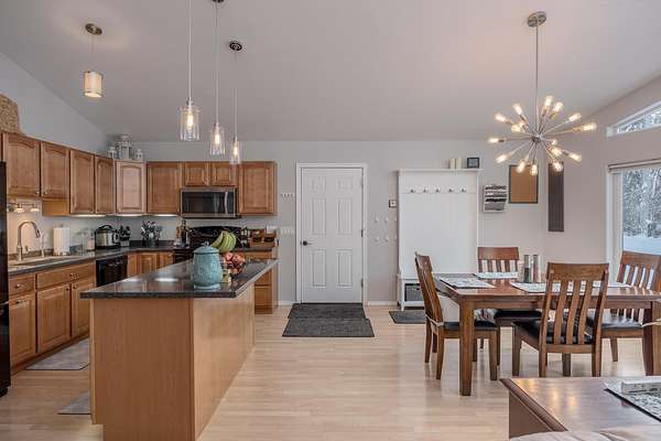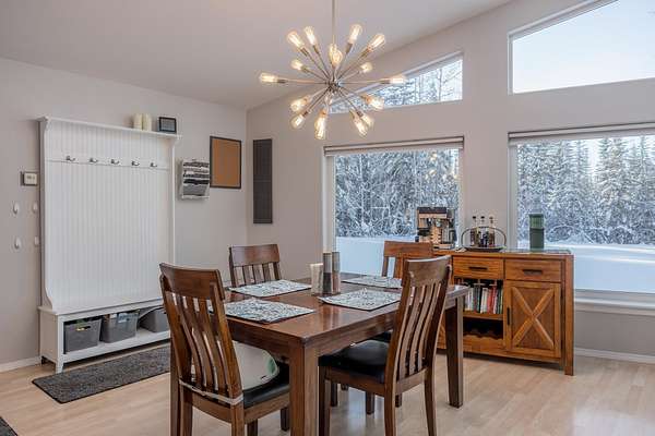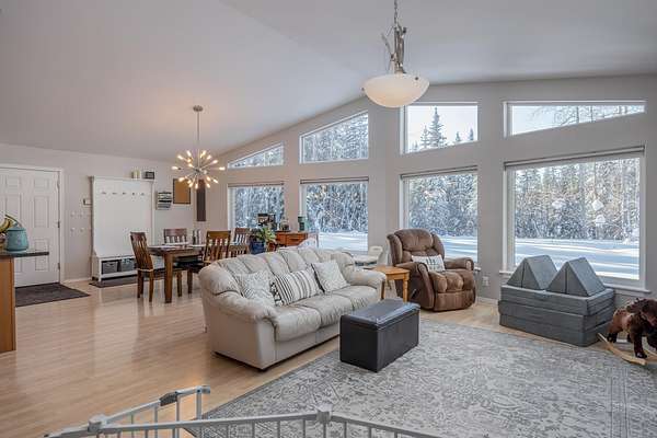 Tucked away on 3.55 wooded acres backing to the Chena Slough, this well-maintained 3-bedroom, 2-bath ranch-style home built in 2007 offers privacy, comfort, and a thoughtfully designed open floor plan. This home includes a heated two-car garage, offering plenty of space for parking and storage, efficiency like added insulation, two and three pane window and a back up generator port when the power goes out. The spacious master suite features a large walk-in closet and an en-suite bathroom with dual sinks, offering both convenience and function. In the separate laundry room there is space to keep things organized and private. A Blaze King wood stove installed in 2019 provides steady warmth and adds a comfortable feel to the home, especially while enjoying the quiet natural surroundings. The property backs directly to the Chena Slough, offering peaceful views and easy access to the water. Grayling and pike, both local favorites, have been known to be caught right from the backyard. Wildlife such as moose, birds, foxes, ducks, and geese are sometimes seen around the property. On clear winter nights, the aurora borealis can often be seen from the home, as shown in the listing photos. With its private wooded setting, 3.55 acres, and practical layout, this home offers a unique opportunity to enjoy both comfort and nature. Conveniently located less than 10 minutes from Eielson Air Force Base and the back gate of Fort Wainwright, and within easy reach of nearby shopping and amenities, offering a convenient location while still feeling tucked away.