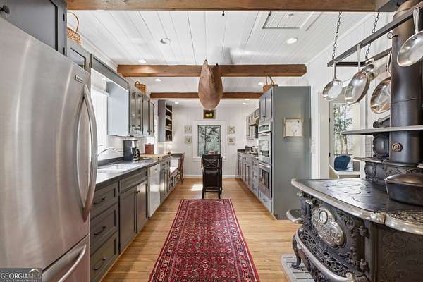 - Beamed Ceilings, Master On Main Level, Vaulted Ceiling(s)