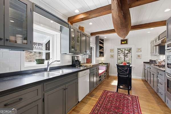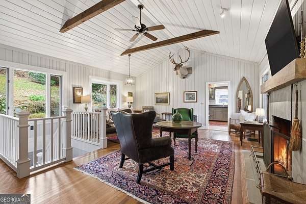Step into this Highlands retreat situated across the street from Lake Sequoyah. Own your own private dock to enjoy the lake & sit on the porch overlooking the calm water. With 4 bedrooms and 5 full bathrooms, there's plenty of room for owners and guests alike to enjoy this mountain getaway. Curated to embrace mountain lifestyle this home is cozy and comfortable. There's even a wood-burning cookstove in the kitchen you can use if you want to take a step back in time. When you're not soaking in the relaxing atmosphere of the home, take a short drive into downtown Highlands for the best shopping and dining experiences the plateau has to offer. You're also only about a half-hour from Franklin, NC & Dillard, GA. This home sits adjacent to 3 vacant lots which are also available for purchase, which would total around 4.86 acres if purchased together. Highlands is calling! Schedule your trip to see this gorgeous property today!