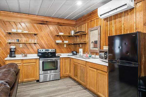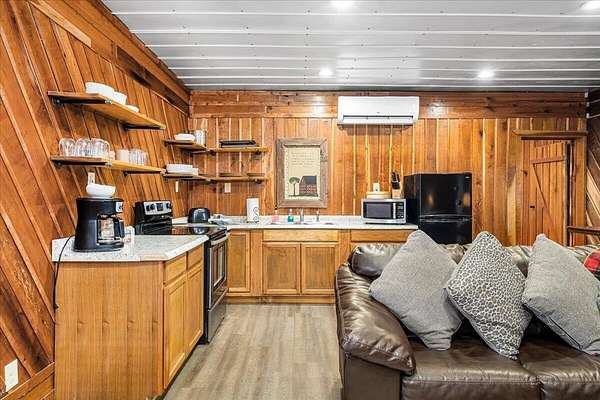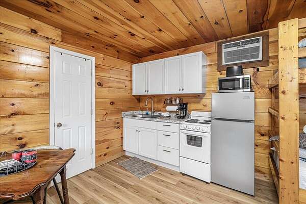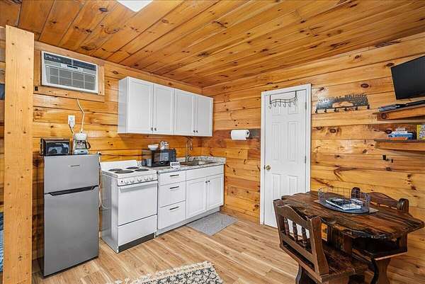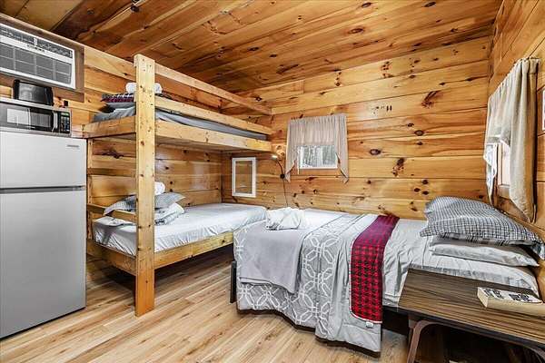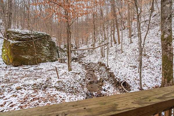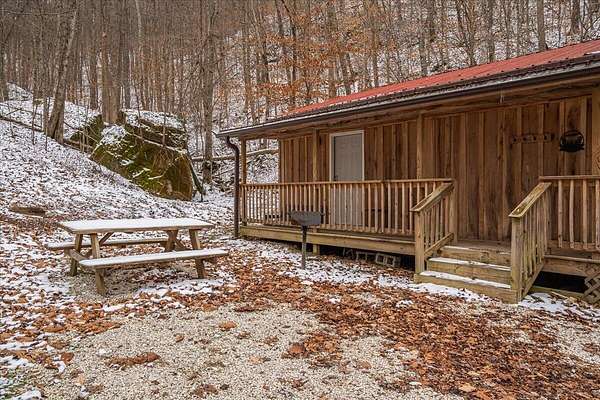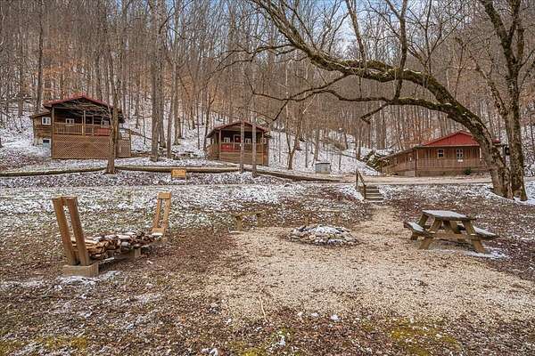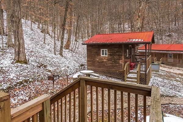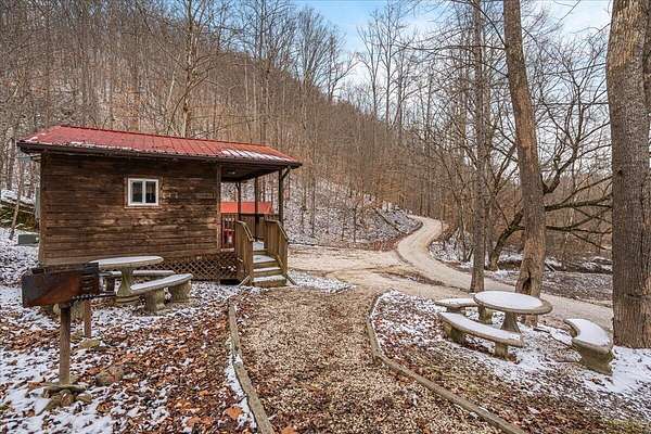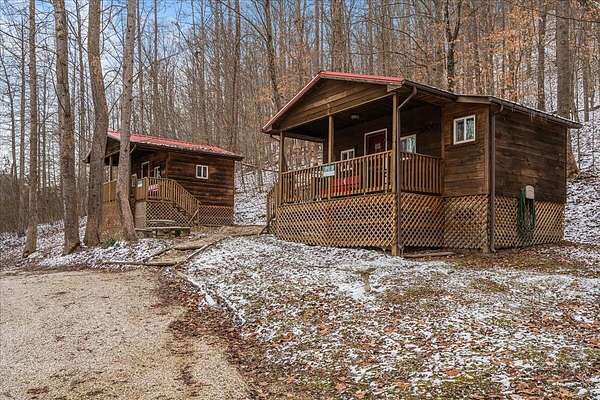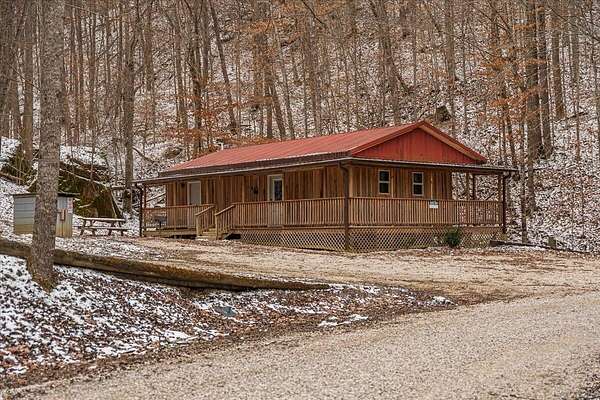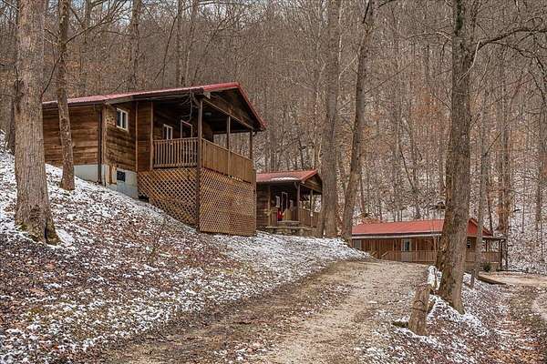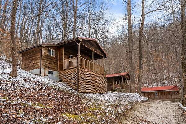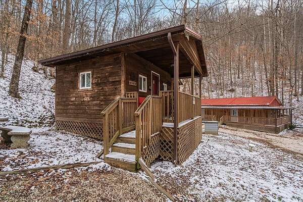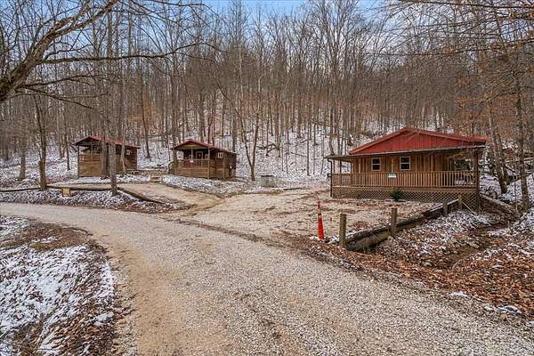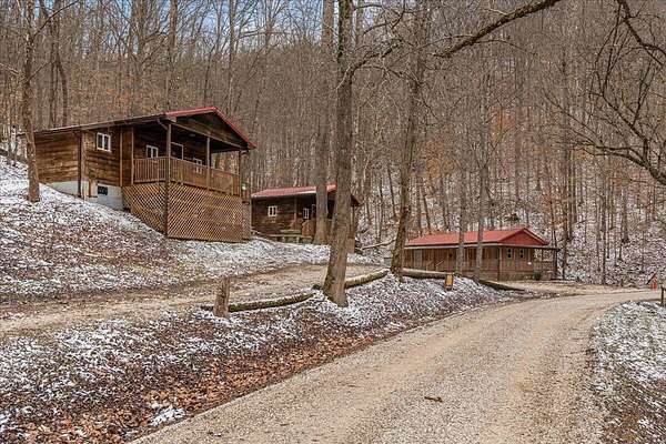 It's being shouted from the rooftops that the Red River Gorge is the place to invest-and the momentum here shows no signs of slowing down. Here is your chance to own three cabins with income potential from day one, located just 14 minutes from Slade in the heart of the Gorge. Situated on 2.34 acres, this unique property features 216 feet of direct Red River access and borders the Daniel Boone National Forest, offering guests an authentic Red River Gorge experience with water, woods, and privacy right outside the door. The main cabin offers 2 bedrooms, 1 bathroom, an open-concept living space, and a beautiful wrap-around porch perfect for relaxing after a day of hiking or exploring. The two additional cabins are efficiency studios with bathrooms and can each sleep up to four guests. The smaller cabins have recently been updated with refreshed kitchens and bathrooms. An additional bonus is the extra build site with accessible water already in place, providing the opportunity to add another cabin and expand your investment potential. Properties offering direct river access, multiple cabins, and expansion opportunities are rare in the Red River Gorge. Whether you're looking for a turnkey short-term rental portfolio or a private getaway with income potential, this property is a must see.
