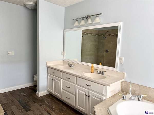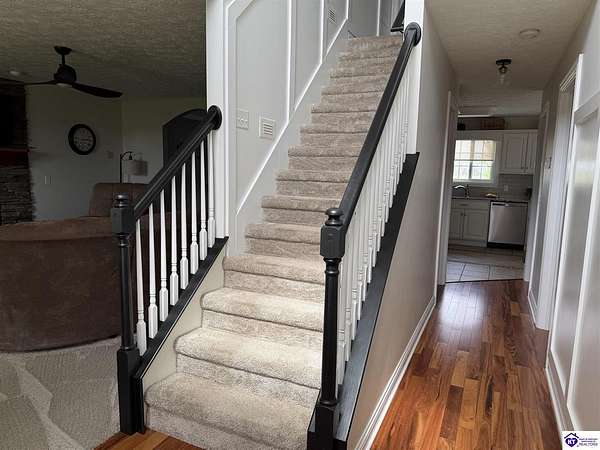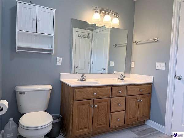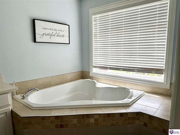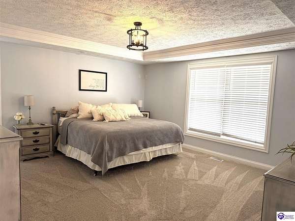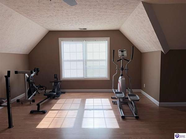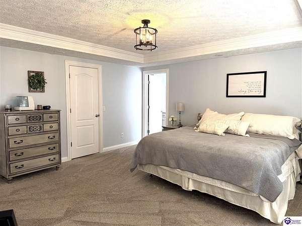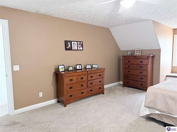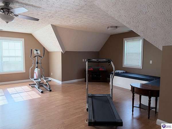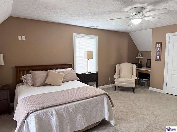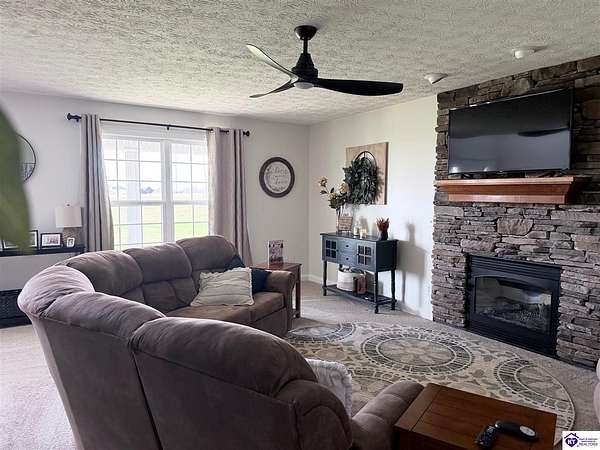 This Charming 2 story home w/4 bedrooms and 3.5 baths located on a 1.97 acre lot, situated just FIVE MILES TO ELIZABETHTOWN & 10 MINUTES TO I -65. Lovely 2 story foyer. Large primary bedroom located on main floor and EnSite walk in closet, Jetted tub and big ceramic tile shower. Roomy living room features stone gas log fireplace, open to the formal dining room. Large kitchen with breakfast area, lots of cabinetry, granite counter tops and has patio doors going to the deck. Nice main floor laundry room. 2nd and 3rd bedrooms and nice full bath on 2nd floor, huge bonus room now being used as an exercise room features large window seat area. Walkout basement has 4th bedroom, lovely full bath, there is a large rec room perfect for a pool table, roomy family room has a gas fire place and walks out onto a huge patio.