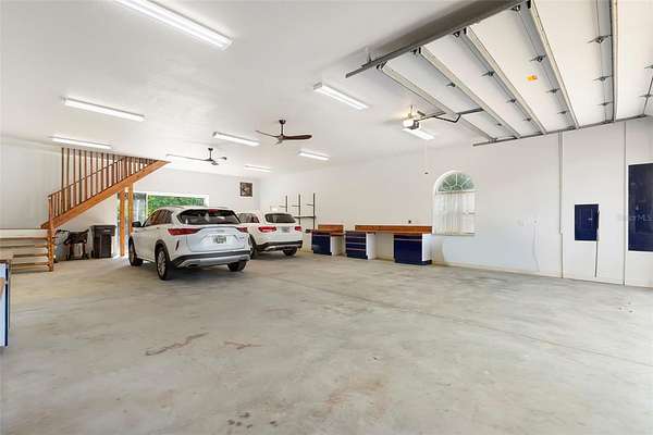 An oversized garage with capacity for 6+ vehicles offers exceptional versatility for collectors, storage, or workshop use.