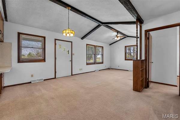 - Ceiling Fan(s), Country Kitchen, Dining/Living Room Combo, Laminate Counters, Open Floorplan, Vaulted Ceiling(s), Workshop/Hobby Area