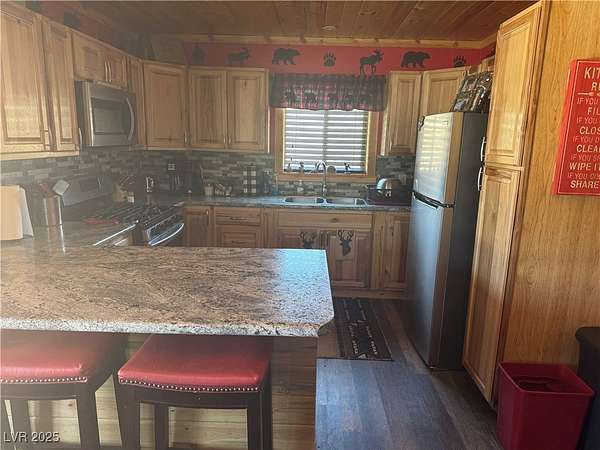 Est $2,062/moThis beautiful log cabin is located in Brian Head Utah and features two bedrooms, one and half bathrooms, a full kitchen, a wood burning stove, a shed, space to park your RV and a beautiful deck to enjoy the wide open beauty of the area, star gazing and fishing nearby. The water storage tank and furniture are included. The water comes from a community well and st6ored in the tank. There is a water association of $125 per year that provides the water and maintains the roads during the warm months. Power is solar.