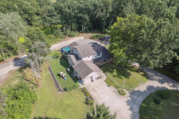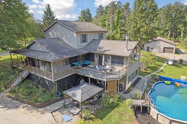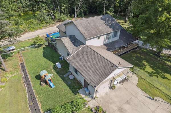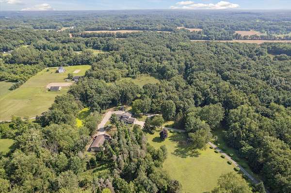 Welcome to your retreat. 26.8 Acres with 2 ponds & plenty of hunting opportunities. Follow the 1/4 mile asphalt tree lined drive back to your home with over 4200 finished square feet. It features 3 bedrooms & 3.5 baths, Whole house generator, Hot Tub, & Above Ground Pool. There's a covered deck running from the front west side all the way down the south side of the house. The primary bedroom with an en-suite bath is on the main floor leading out to a private deck. There's 2 fenced in areas with doggy doors so your fury friends can easily access the outside. There's also 2 pole barns to store all your toys. Both with concrete floors. The first one is 24' x 30' (720 sq ft) & the larger one is heated. 40' x 60' (2400 sq ft). Please Do Not Drive Up The Driveway Without REALTOR