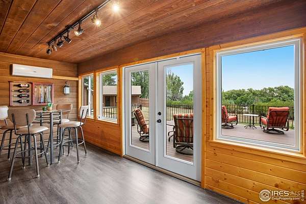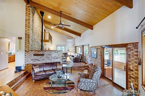 OPEN HOUSE SAT 11-1! Rare opportunity! Beautiful small acreage in South Loveland perfectly set-up for horses! Situated on 3.3 private acres with mature trees, this 4179sqft 4 bed/3bath home includes a oversized attached garage + additional bay for tool/equipment storage, and a 412sqft detached workshop complete w/ heating and cooling, dust collection system, 220V and 90amp service + carport. Fully fenced pasture w/ 2 horse pens, 2 horse stalls + 422sqft barn, heated auto waterers, power and water. As you enter the home you are greeted with expansive 25' vaulted ceilings w/ T&G and solid wood beams above, and Australian Cypress floors under your feet. Wonderfully updated kitchen features knotty alder cabinets w/ soft close, granite counter tops, induction cook top, new appliances, and pantry. (2) finished and temperature controlled sunrooms. (2) pellet stoves + (6) mini-split units provide plenty of heat and cooling throughout. Vaulted ceiling in primary bedroom w/ balcony. Finished basement includes additional storage and bedroom. Last, but NOT least, you will love the massive composite deck w/ covered hot tub (included)! Backup propane generator w/ dedicated tank also stays . Fantastic location w/ quick access to I25 from 402 and less than 10min to grocery stores, Home Depot and more!