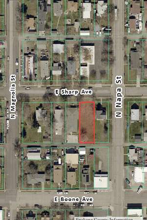 Improved city lot with all utilities at lot line. Property previously held 2BR/1BA dwelling that was tore down in 2007. Excellent commuting location; close to I-90 connections and centrally located between the campuses of Gonzaga, Spokane Community College, WSU/EWU Health Sciences & the U-district (all within +/- 1 mile radius). Great for new single family build, potential student housing, or other rental investment opportunity. Stevens Elementary School is 2-3 blocks away and STA's main line (Route 1) is 2 blocks north at Mission Ave & Nappa. Additional STA bus stop is 1 house away on Napa. Sewer available at rear lot line in alley between Sharp & Boone. Buyer to verify all information with municipalities, code & building departments, and city utilities.