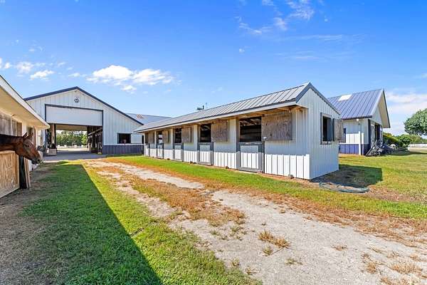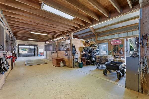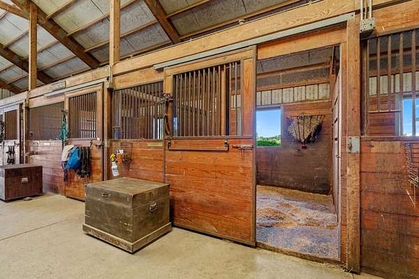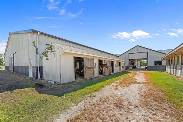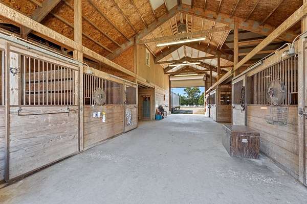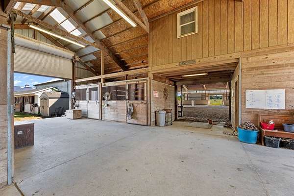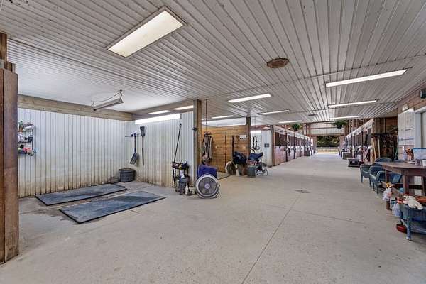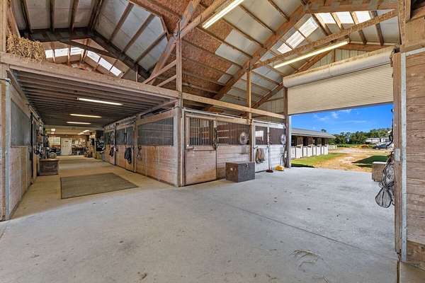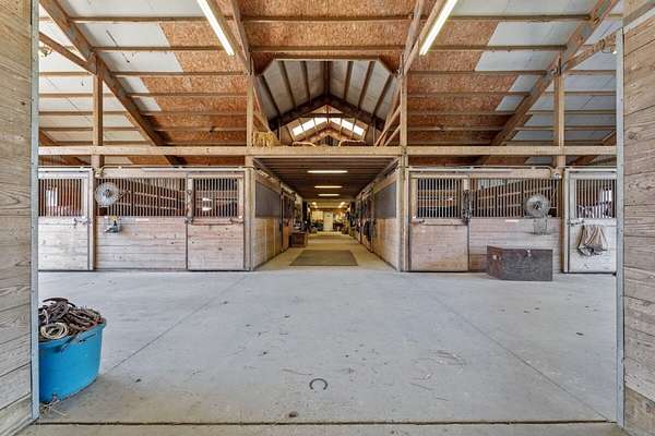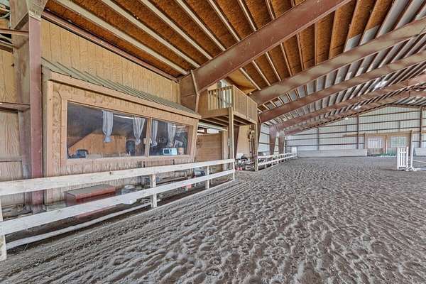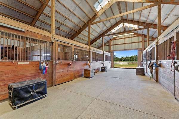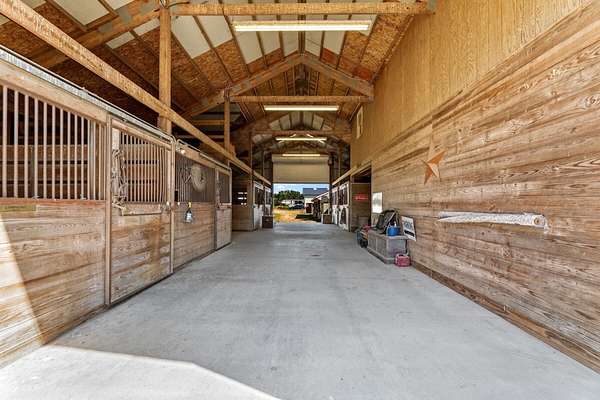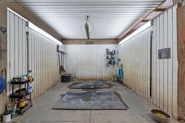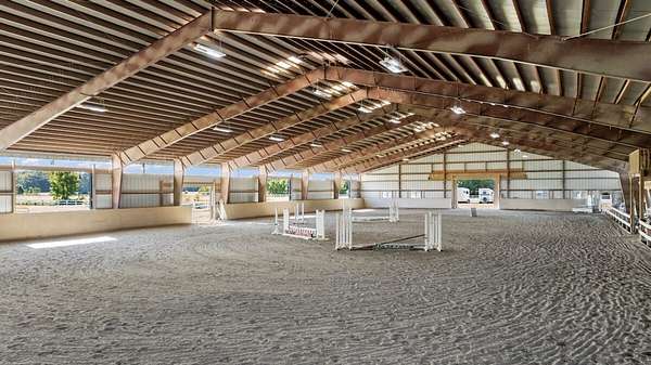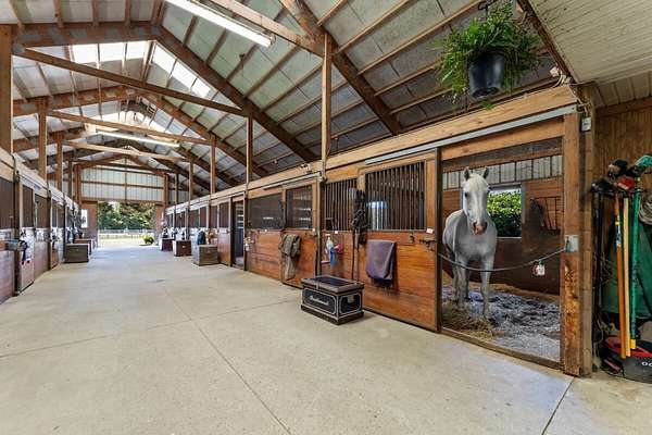 - 42 fully equipped stalls, including oversized 12'x12' with mats and automatic waterers, pony stalls, and additional wash stalls with hot/cold water and overhead heaters.