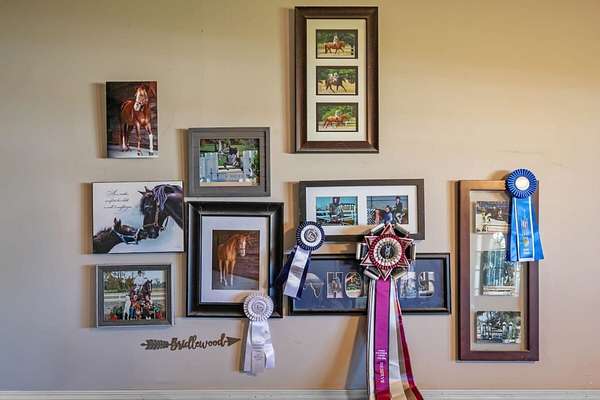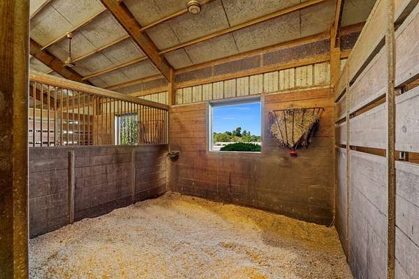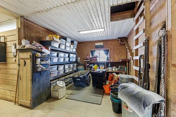 - A temperature-controlled tack room, lounge/office with full bath, and additional half bath with laundry.