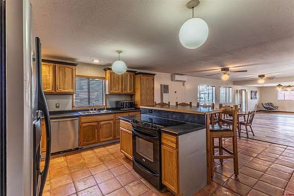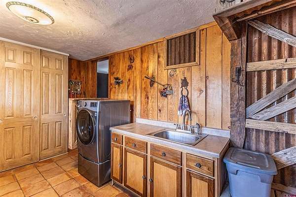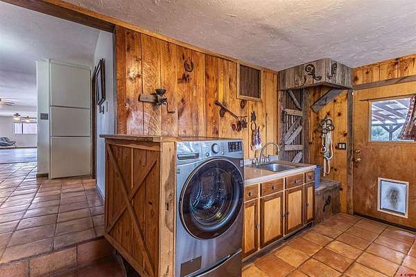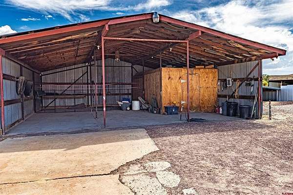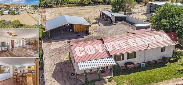 Allen Elmore, eXp Realty, LLC, C: 505-686-3831, Allen@AE.Properties, www.crenmls.com: ''Coyote Canyon'' Horse property in the picturesque La Plata Valley, just minutes from Farmington, NM, and less than an hour from Durango, CO. This nearly 2-acre estate is fully fenced and gated, offering a perfect blend of country living and modern convenience with a site-built home, multiple barns, pens, corrals, and an irrigation well. The spacious 2-bedroom, 2-bathroom stucco home with a durable propanel roof features an open-concept floor plan designed for comfort and functionality. The kitchen is well-appointed with an island and raised breakfast bar, 5-burner electric stove, refrigerator with ice, dishwasher, and generous pantry-style cabinetry. Living areas flow seamlessly, including dining, den, and family spaces accented by ceiling fans. A large mudroom/laundry with sink and abundant storage adds everyday convenience. The primary suite offers an oversized closet, built-in cabinets, plus an en suite bath with dual sinks, shower, and garden tub. The second bedroom also includes an oversized closet and private en suite bath, ideal for guests. Enjoy outdoor relaxation on the covered, screened patio with hot tub. The home is efficiently cooled with a mini-split A/C system. Equestrian amenities include two pole barns: Barn One with parking for two oversized vehicles and a large workshop/storage area; Barn Two with a hay barn with loading dock, four pens, tack room, and well house with a tack room. Additional features include a corral, a riding arena, well irrigation-fed lawns, and hay storage. With natural gas available at the road, this property is move-in ready for horse enthusiasts or anyone seeking a versatile country lifestyle with quick access to town.