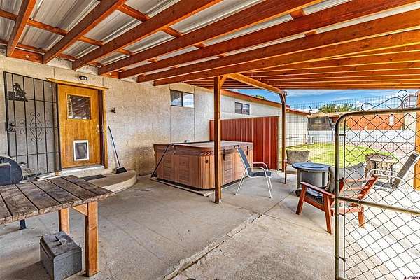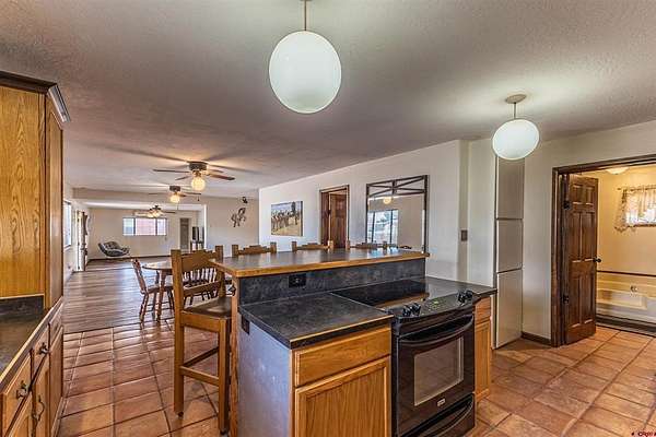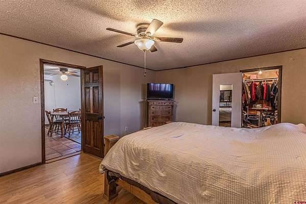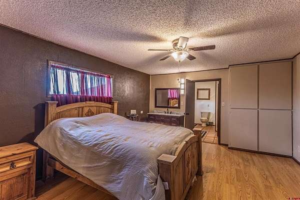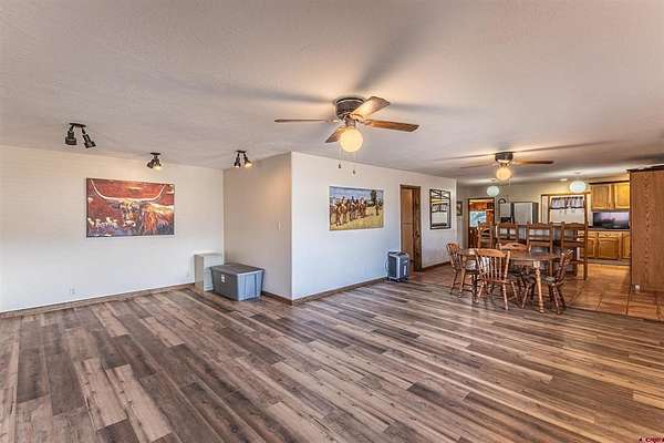 Allen Elmore, eXp Realty, LLC, C: 505-686-3831, Allen@AE.Properties, www.crenmls.com: '''Latigo'' Equestrian or Farm property in the picturesque La Plata Valley New Mexico, just minutes from Farmington, and less than an hour from Durango, Colorado. This nearly 2-acre estate is fully fenced and gated, offering a perfect blend of country living and security with a site-built home, multiple barns, pens, corrals, and an irrigation well. The spacious 2-bedroom (room for 3), 2-bathroom stucco home with a durable propanel roof features an open-concept floor plan designed for comfort and functionality. The kitchen is well-appointed with an island and raised breakfast bar, 5-burner electric stove, refrigerator with ice, dishwasher, and generous pantry-style cabinetry. Living areas flow seamlessly, including dining, den, and family spaces accented by ceiling fans. A large mudroom/laundry with sink and abundant storage adds everyday convenience. The primary suite offers an oversized closet, built-in cabinets, plus an en suite bath with dual sinks, shower, and garden tub. The second bedroom also includes an oversized closet and private en suite bath, ideal for guests. Enjoy outdoor relaxation on the covered, screened patio with hot tub. The home is efficiently cooled with a mini-split A/C system. Equestrian amenities include two pole barns: Barn One with parking for two oversized vehicles and a large workshop/storage area; Barn Two with a hay barn with loading dock, four pens, tack room, and well house with a tack room. Additional features include a corral, a riding arena, well irrigation-fed lawns, and hay storage. With natural gas available at the road, this property is move-in ready for horse enthusiasts or anyone seeking a versatile country lifestyle with quick access to town.