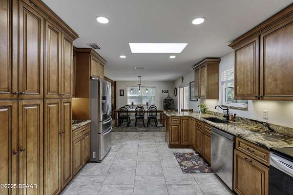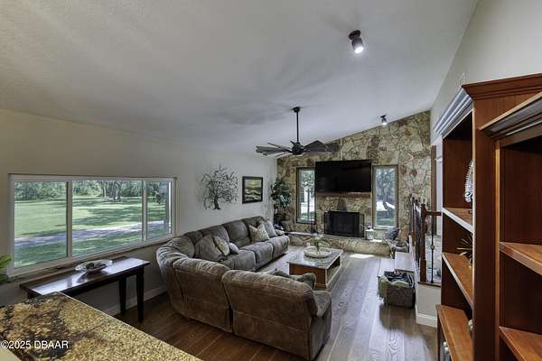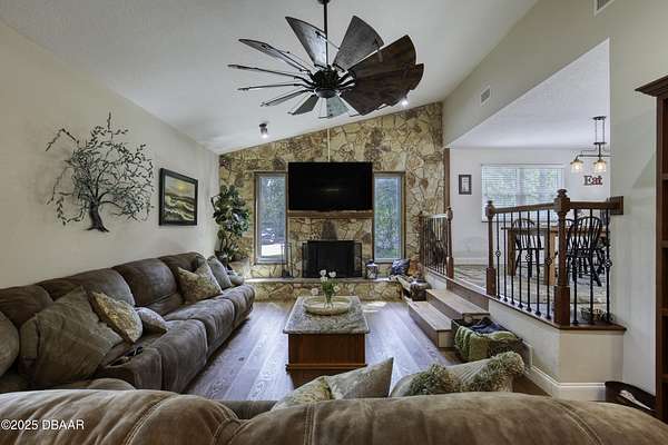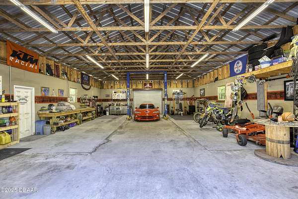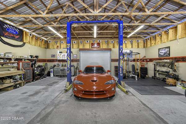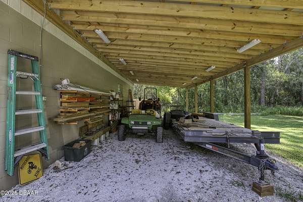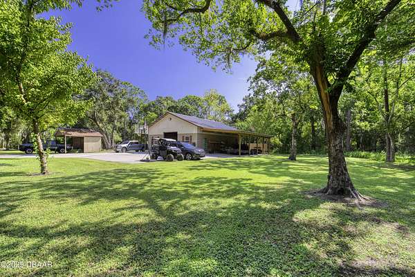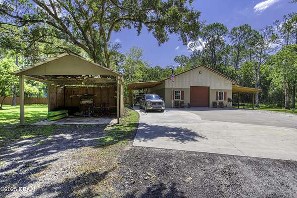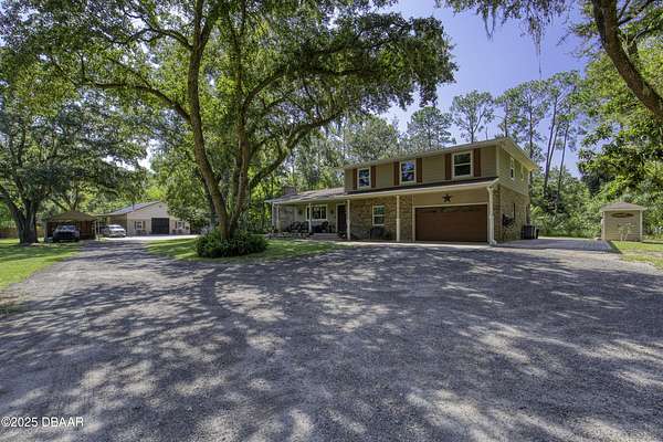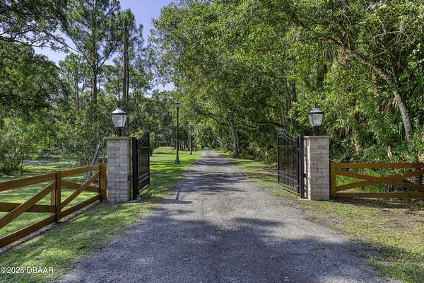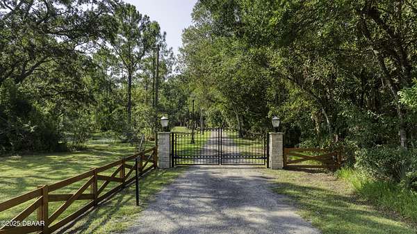 SECLUDED COUNTRY RETREAT IN THE HEART OF PORT ORANGE- 5 Acre of Private Paradise!! Behind a private gated entry lies a rare opportunity to own a secluded country estate right in the heart of Port Orange. Set on 5 pristine acres, this 3-bedroom, 2.5-bathroom home offers the perfect blend of privacy, comfort, and endless lifestyle possibilities. Inside, you'll find a warm and inviting living room with a fireplace, an office space for working from home, and a spacious family room that can easily be converted into a fourth bedroom if desired. The heart of the home is the gorgeous kitchen, featuring stainless steel appliances, high-end granite countertops, abundant cabinetry, and a dining area that flows seamlessly for entertaining. A 2-car garage provides convenience and storage. Step outside and you'll discover your own private oasis. A screened-in pool area creates the perfect space for gatherings, while the pond with a dock and fountain adds serene charm. Adventure awaits with a treehouse and zipline, a small moto x track for dirt bikes and four-wheelers, and even a 50-yard shooting range. For hobbyists and professionals, a fully operational 1,560 sq. ft. workshop with a 9,000 lb. automotive lift is ready for use, complete with lean-tos on both sides for storing boats, toys, and equipment. Additional features such as a whole-house water filtration system, driveway lighting; four 18-foot decorative concrete light poles, and Victorian-style exterior light fixtures add both beauty and function to the property. More than a home, this estate offers a lifestylewhether you're seeking quiet relaxation, outdoor adventure, or space to bring your passions to life, this one-of-a-kind property has it all.