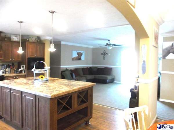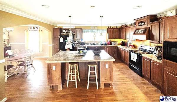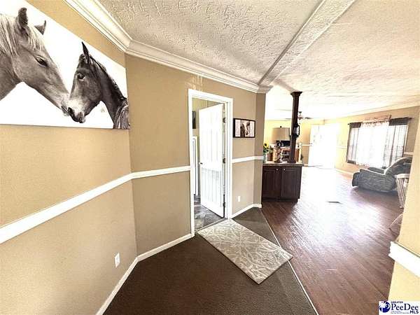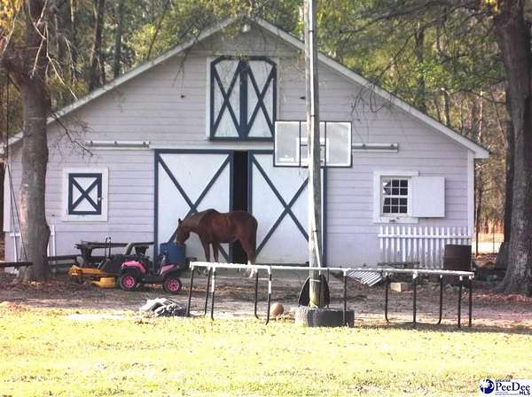Welcome to Marion S.C. where you can enjoy charming country living! This home has it all. Spacious 2482 sq.ft.,2.5 bath on 3.78 acres with a POND. Home offers a split open floor plan with a living room, formal dining room, a huge kitchen with an island and plenty of cabinets, den. Enter into the stylish owner's oasis that has an en-suite bath, a walk-in-shower, a large soaker tub, walk-in-closet. Three other good size bedrooms, full bath, two of the bedrooms has walk-in-closets. The roomy laundry area has a half bath, utility sink. The generous acreage makes this home perfect for country living with room to roam and endless possibilities, family gatherings, horses, pool. The backyard barn features four stalls, a tack room, kitchen, upstairs loft. Located close to town, fifty miles from Myrtle Beach. USDA qualified. Schedule your private tour today!!