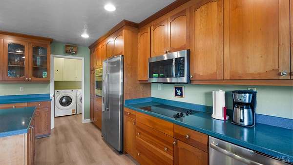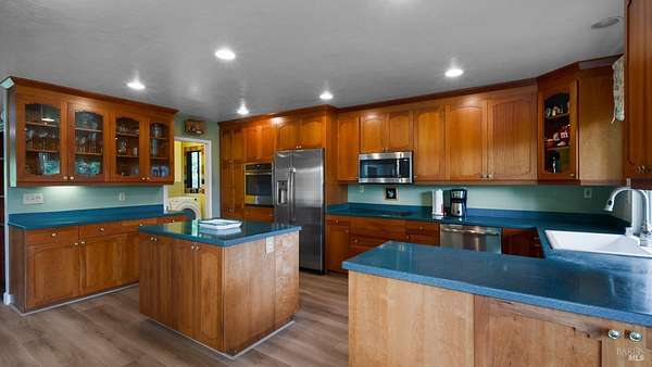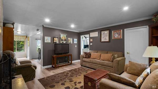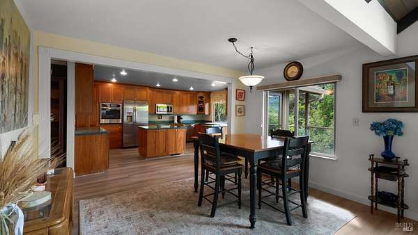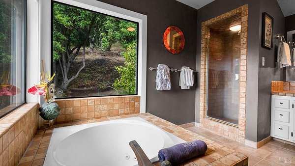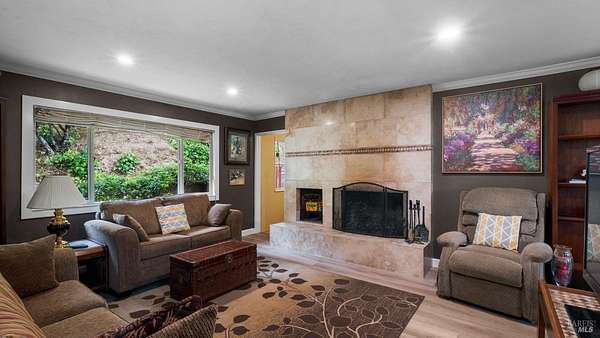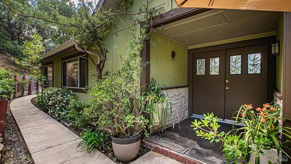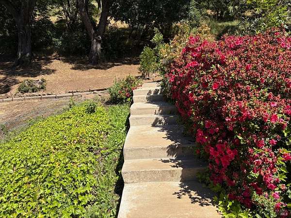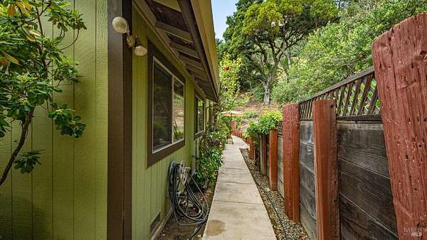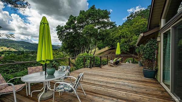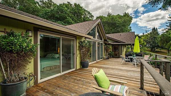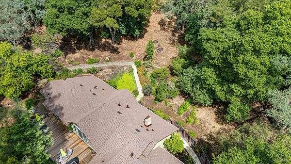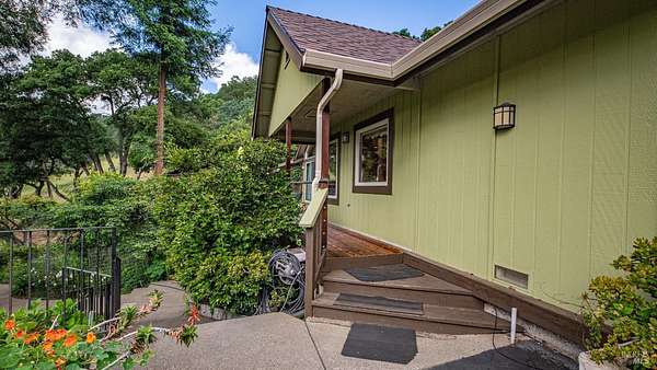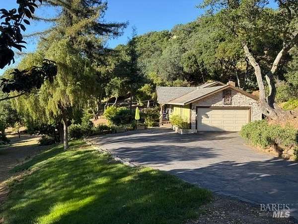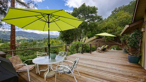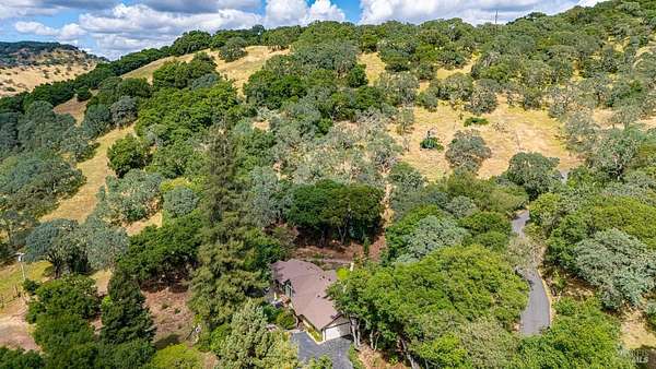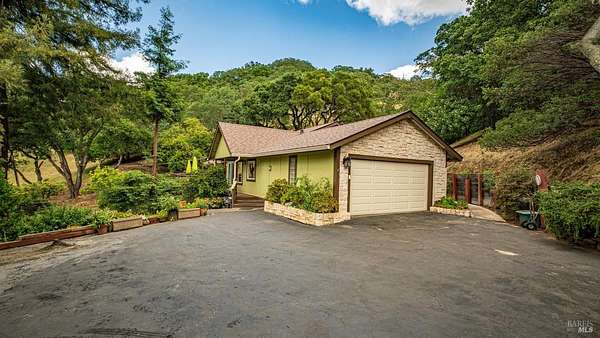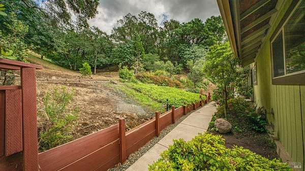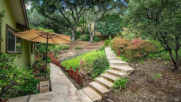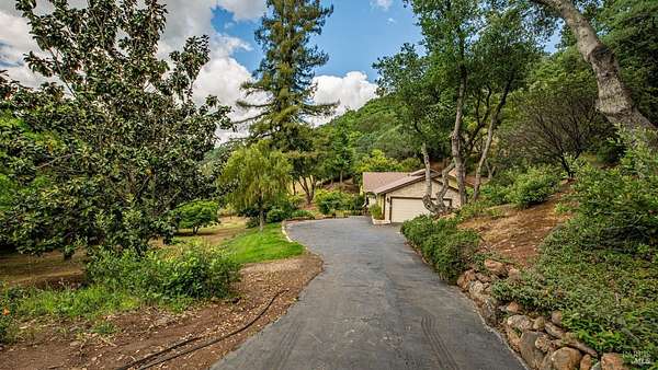As you travel North on Green Valley Road lush vineyards roll out on your left like a living postcard, soft rows of grapes catch the light. On the right? You've probably driven past it a hundred times without noticing, but there it is..VINTAGE LANE! Once that automatic gate glides open, you slip into a STORYBOOK secret, a quiet country road where the world fades. Squirrels dart across, turkeys strut, deer peek out. The neighboring handful of homes are tucked deep into their own acreage. It is one of the most treasured Vintage Legacy Property neighboorhoods in Green Valley. Just a handful of homes share this private paradise At the very end? Your private kingdom. Nearly at the top, near the back side of Rockville Hills Park you will find this charming SINGLE STORY, nestled among gorgeous Oaks, Manzanita, Mesquite, Citrus and a spectacular Redwood standing guard. Picnic under its shade! Start with coffee on the deck in the morning and wine at sunset. The expanded deck is a luxury outdoor space. Inside: 3 Bedrooms PLUS office. Single Story! Wide-open floorplan by design. Offering an open flow from the kitchen to the Great room. BREATHTAKING Private Views from most Windows! Kitchen glowing with Corian counters, GE Profile stainless steel appliances, timeless cabinets with glass fronts that show off your favorites. Underfoot? 10-inch luxury plank vinyl floors, newly installed. Bedrooms? Real hardwood, soft under bare feet. And the bath? A Japanese soaking tub awaits your day..eclectic, perfect. Outside: Magnolia trees shade the path, azaleas pop color, nasturtiums and roses spill over. Trails wind up and around, it's your own private hiking oasis-even a picnic table tucked in, keep climbing to the top and Elkhorn Peak stares back, all yours! No HOA. No dues. No rules. Just freedom. Annual gate maintenance fee of a modest $250 per YEAR and shared road responsibility with the neighbors. Green Valley is known to be PRICELESS! Dream of having baby goats in pajamas? Chickens? A Garden? The winding landscape is a living fairy tale, write your own story. Did I mention RV parking? Yes! Right next to your own Well House. Fresh Well Water. Sunset Views! A cozy fireplace and hearth in the living room! Storage thoughtfully placed. Previous owners years ago added an office, and there is an outdoor covered room with a window and wind protection, perfect for a Gym. COME SEE for yourself. This isn't house-hunting. It's claiming your forever. *Brand New Roof just installed
