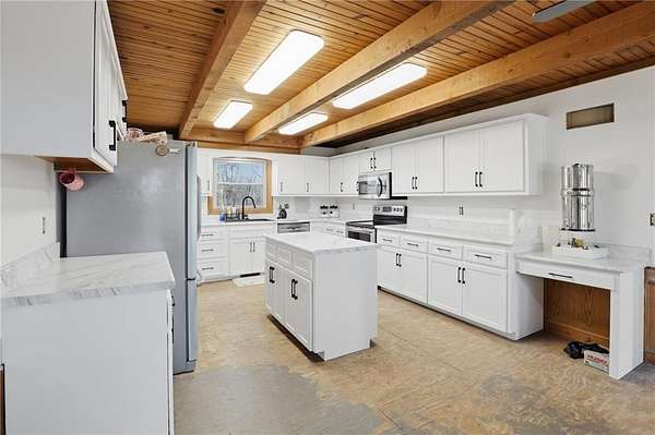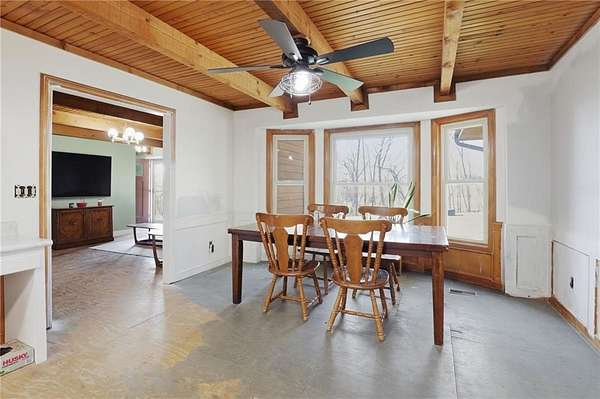 This acreage property just outside of Lawson offers approximately 25 acres of open ground and mature trees-creating the kind of setting that's getting harder to find. What sets this one apart... the sellers have invested over $150,000 in recent improvements. Major updates include a new kitchen, updated bathrooms, new roof, new HVAC, new windows, All new doors, and a new cedar front porch-giving you a strong foundation of big-ticket items already handled. One of the standout features is the wood-burning fireplace with insert connected to the ductwork-providing an additional heat source throughout the home and the potential to reduce propane use during colder months. Some interior updates are still in progress, including portions of paint and trim. Flooring has not been fully completed, offering an opportunity for the next owner to select finishes based on their preference, depending on terms. Step outside and the possibilities really open up. A large barn (approximately 60x40) with three stalls, water, and electricity is ready for livestock or equipment. The separate shop (approximately 30x50) with water, heat, air conditioning, and concrete floors offers the kind of space that's hard to find-ideal for projects, storage, or workspace. An additional shed provides even more room for tools or gear. The property also features fruit trees and three large raised garden beds, giving you the ability to grow your own produce, flowers, or simply enjoy the land in a more intentional way. Whether it's working in the shop, spending time outdoors, tending the garden, or just having the space to breathe-this property delivers a lifestyle that's difficult to match. An additional approximately 15 acres located east of the property is also available for purchase, either with the home or separately. Located in the well-regarded Lawson School District with convenient access to nearby highways.