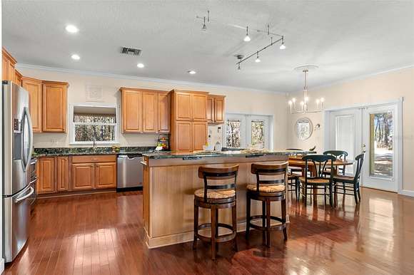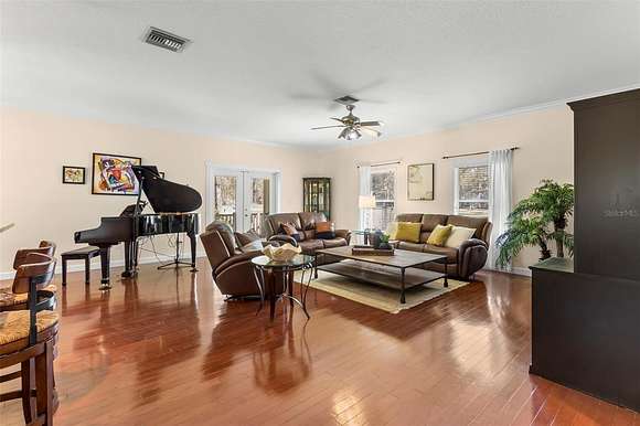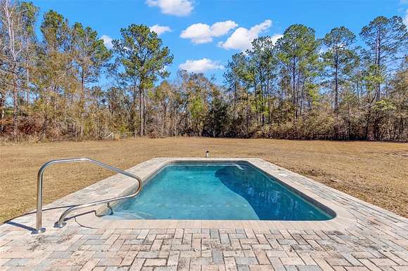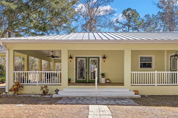 PRICE REDUCTION- SELLERS ARE MOTIVATED and ready to make a deal! You can be the LUCKY one! Tucked away in the beautiful neighborhood of Hidden Oaks sits this beautiful country estate featuring a 3/2 main house and 2/2.5 guest cottage on 8.3 acres. The home offers an open floorplan with the kitchen overlooking the dining and living room areas with a central office and full laundry room equipped with a tankless water heater. There are contiguous wood floors throughout with the exception of tile in the bathrooms in the main house. The guest cottage connects via breezeway and features two en suite bedrooms, full kitchen and a third bathroom accessible from the exterior of the cottage that has a walkway leading you to the pool with pavered deck. The concrete barn at the front of the property has six stalls with one enclosed as a workshop and covered parking on the side. This property is partially wooded with plenty of wide open spaces for horses or other livestock. This is the ideal location to make your quiet country dreams come true. Shopping and hospitals are close by. Easy access to the Veterans Expressway and 14 miles to I-75! schedule your private showing today!